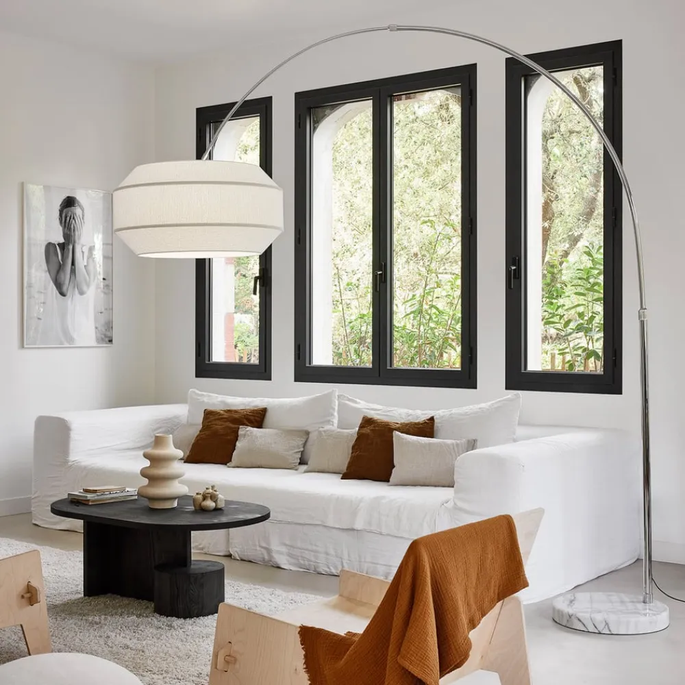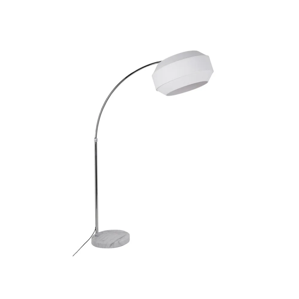 Elegant lysgiver med interessant materialeblanding – buet gulvlampe Cosiness