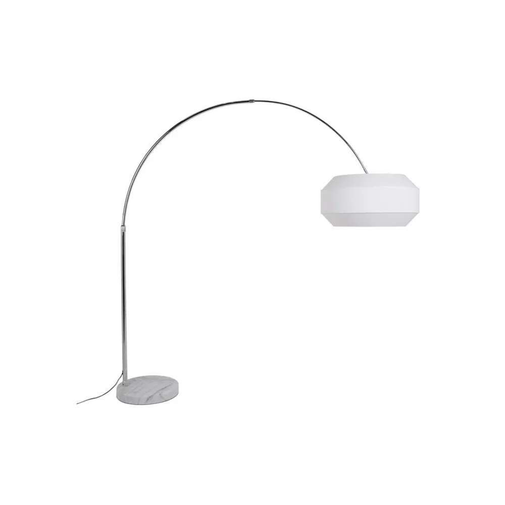 Med gulvlampen Cosiness eksperimenterer det franske designmærke Market Set med en kombination af forskellige elementer. Cosiness er designet i form af en klassisk buelampe. Den runde, elegante fod er lavet af lys marmor og bærer et højt, buet metalstel, der med sin kromfinish virker moderne og desuden gør det muligt at justere højden og udstrækningen. Lampeskærmen i hvid bomuldsbouclé-tekstiler fremstår hyggelig og hjemlig og er cylindrisk i midten og konisk i top og bund.
