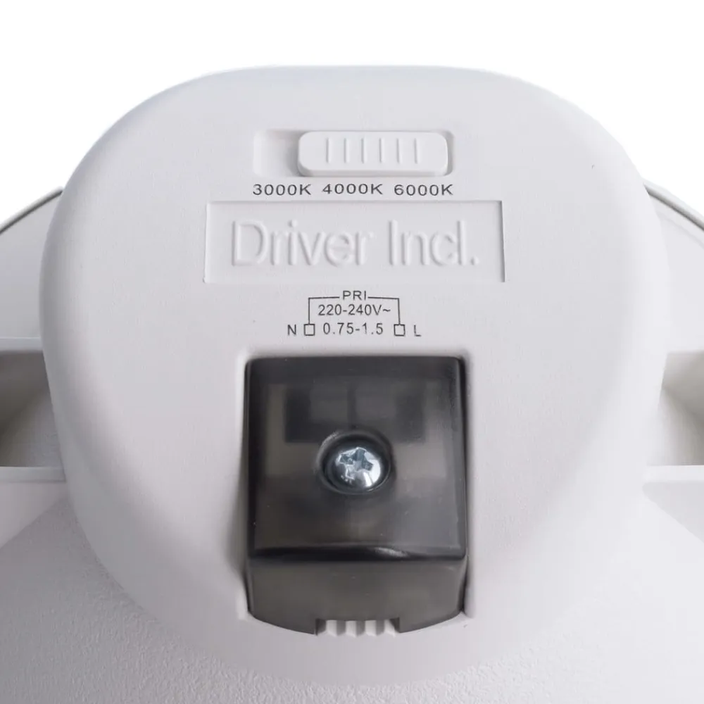 Rund indbygget loftlampe med LED Acrux med kontakt til styring af lystemperatur Før installation kan lystemperaturen på Acrux justeres ved hjælp af en kontakt på bagsiden, hvilket gør den velegnet til brug i mange forskellige områder. Du kan vælge mellem varmhvid, universalhvid og dagslys. Armaturet kan også dæmpes ved hjælp af en fase- eller bagkantstyret dæmper, hvilket giver en enorm fleksibilitet. Acrux er lavet af hvid plast og leveres med et sølvfarvet dæksel, som let kan tages af, hvis det er nødvendigt. Den integrerede diffusor reducerer lysets blænding og skaber en behagelig atmosfære. 90° strålevinkel – Lysfarve kan indstilles før installation ved hjælp af en kontakt