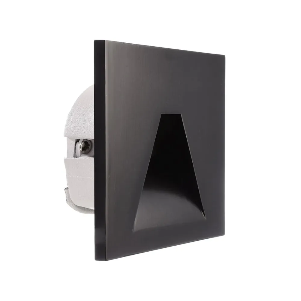 LED-vægindbygningslampe SET Alwaid, kantet linse med vinklet lysudstråling – til 68 mm afbryderdåser Vægindbygningslampen SET Alwaid er ideel til accent- og orienteringsbelysning langs korridorer, kældre og trapper. Den er designet til installation i 68 mm-dåser med et normalt og dybt design. Indbygningslampen SET Alwaid er lavet af aluminium og udstyret med et firkantet dæksel med vinklet lysudsendelse (trapezformet tilspidset i toppen).