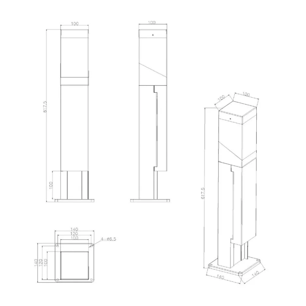 Den rektangulære Kukui Puka-sokkel er fremstillet af mørkegråt trykstøbt aluminium, hvilket gør søjlen tidløs og stilfuld. Kukui Puka er udstyret med to fatninger og har en E27 fatning i det øverste område bag opal plast. Beskyttelsesgraden IP54 sikrer en uproblematisk strømforsyning udendørs til f.eks. haveredskaber. Dækslet kan lukkes helt, når de vinklede propper er sat i. De to sokler kan belastes med maksimalt 3 650 W.