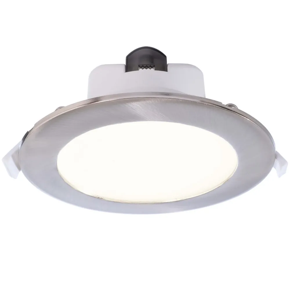Acrux 120 forsænket LED-lampe: moderne downlight med valgbar lysfarve Det moderne design af Acrux 120 forsænket LED loftspot er ideelt til almen belysning og imponerer med øjeblikkelig lysstyrke efter tænding og en lang levetid. Det matterede dæksel sikrer en homogen lysfordeling over hele lysemissionsfladen uden at blænde. Strålevinklen er 90°, og lysfarven kan også justeres til lokale krav før installationen. Du kan vælge mellem varmhvid, universalhvid og dagslys. Dette gøres via en kontakt på bagsiden af panelet – Dæmpbar via fasetilkobling eller fasefrakobling – Inkluderer ekstra dækring i rustfrit stål-look