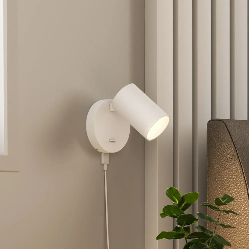 CAN TILT vægspot, hvid, Ø 10 cm, metal, afbryder, USB
