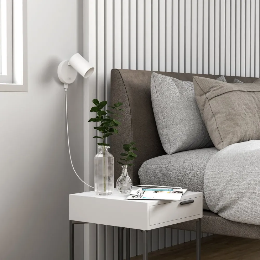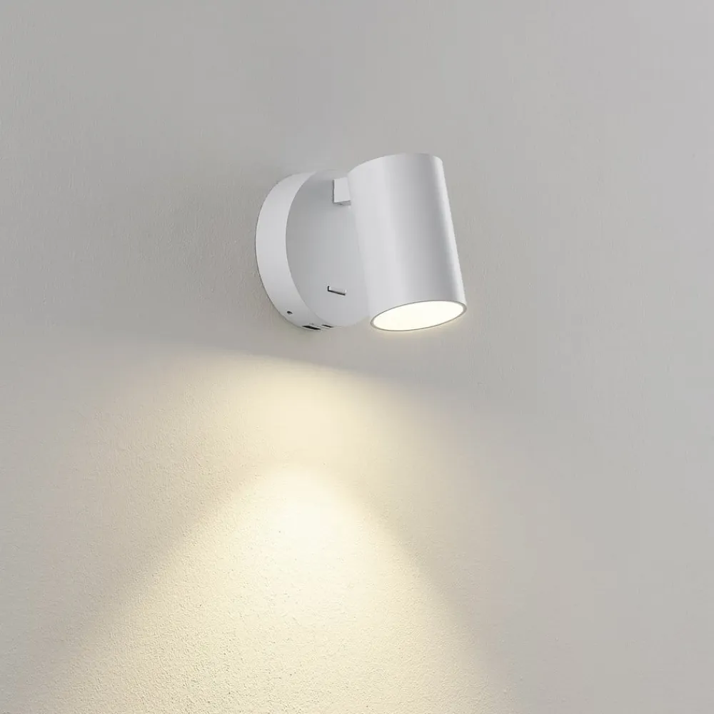 Deko-Light Væglamper|Væglamper>CAN TILT vægspot, hvid, Ø 10 cm, metal, afbryder, USB
