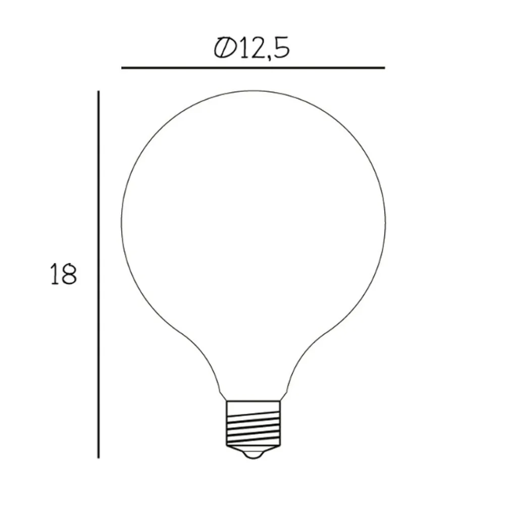 Dæmpbar globelampe: Globe 125 LED-pære, mat, E27, 5 watt, 2.200 Kelvin Globe 125 LED-pæren med E27-sokkel imponerer med sin imponerende størrelse, sin særligt varme lysfarve og sin matte overflade. Den er f.eks. ideel til DESIGN BY US Ballroom XL-armaturerne i hvid, men gør selvfølgelig en god figur i alle armaturer med E27-sokkel, hvor der er plads til denne Globe-lyskilde. Globe 125 er også dæmpbar.