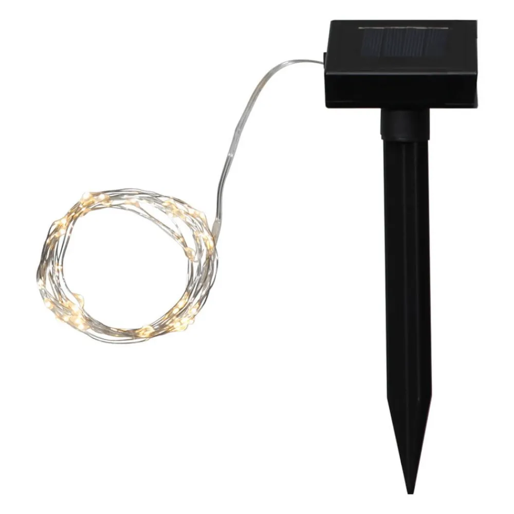 Den solcelledrevne LED-lyskæde Dew Drop kan anvendes hele året, hvor den med dens lys dekorerer genstande og planter i udendørs området. Solpanelet med jordspyd, kan gennem den 200 cm lange kabelforbindelse til kæden, sættes andetsteds i jorden, for at justere den perfekt med solens lys. LED’erne der sidder med intervaller på 5 cm på lyskæden, lyser i en varmhvid farve.