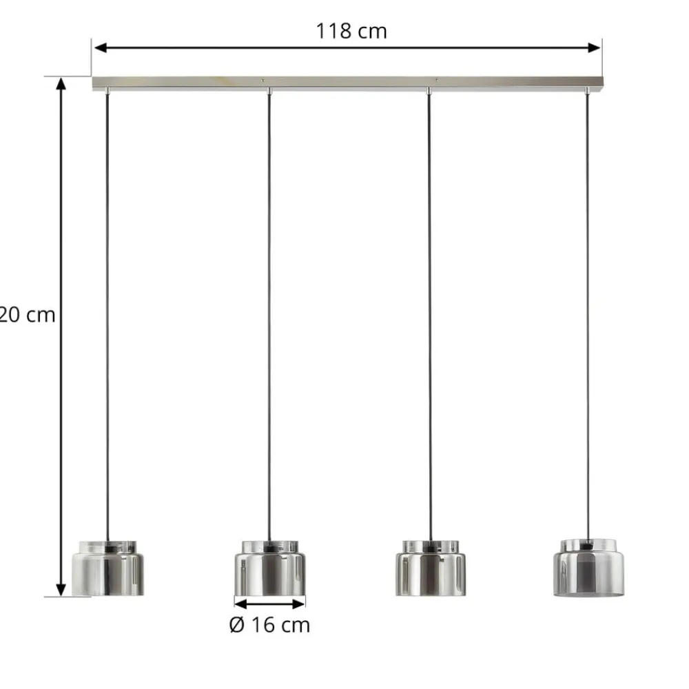 Lucande Diano hængelampe, røggrå, version med 4 lyskilder