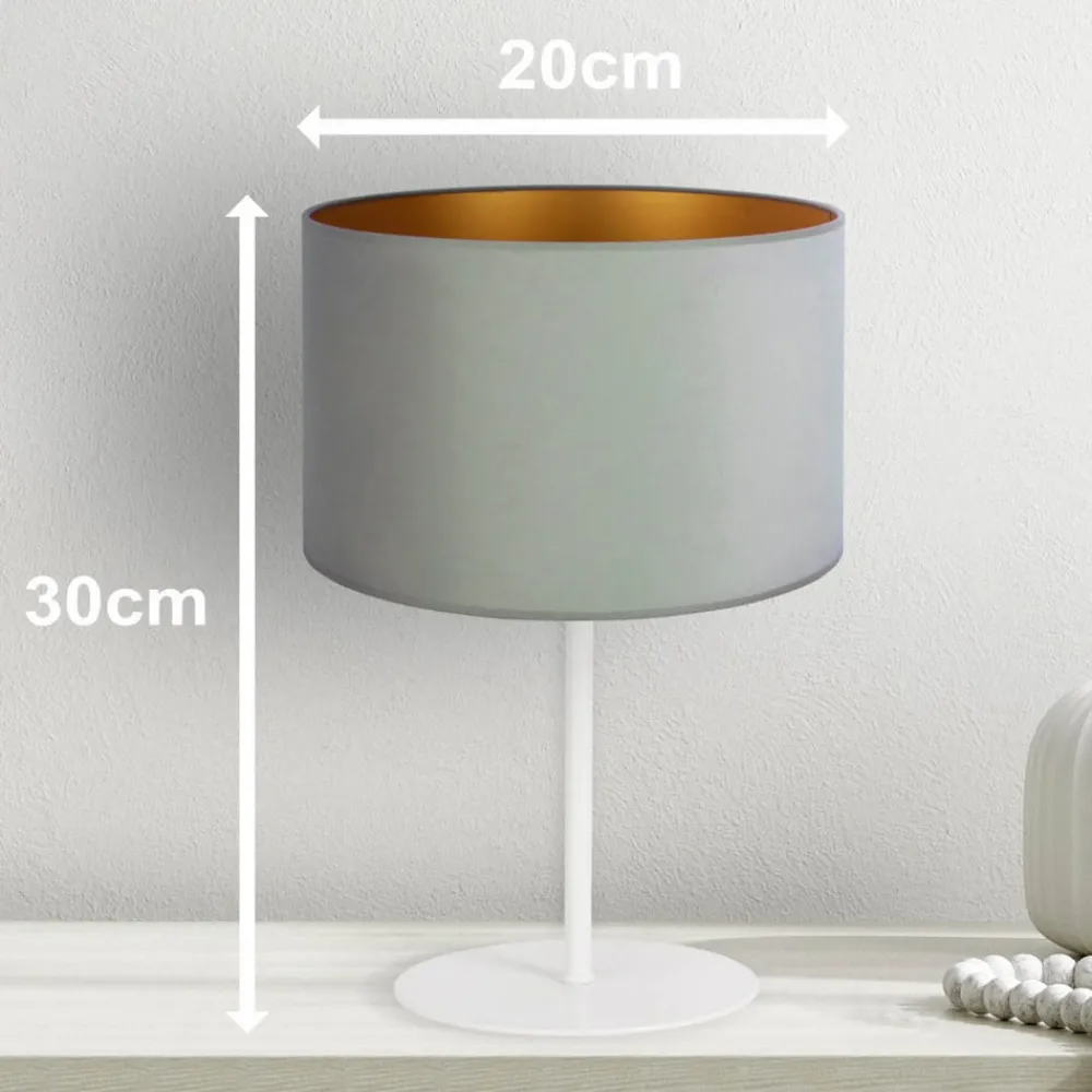 Bordlampen Golden Roller forener stilfuld elegance med materialer af høj kvalitet. Den er fremstillet af fløjl og metal og stråler i farverne mintgrøn, hvid og guld. Denne kombination giver ethvert rum, hvad enten det er stuen, soveværelset eller spisestuen, en helt særlig atmosfære. Lampen er et godt eksempel på den unge boligstil og bringer frisk luft ind i enhver indretning.