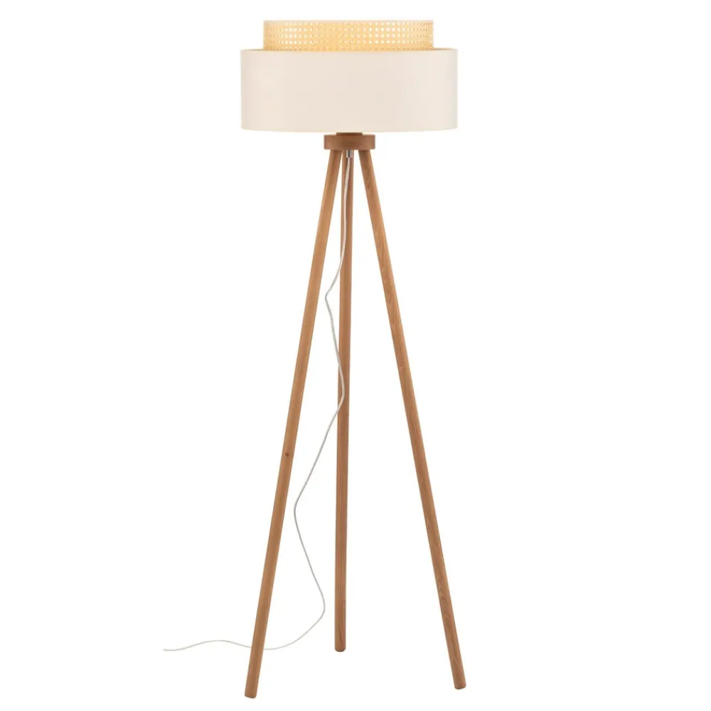 Gulvlampen Boho kombinerer naturlige materialer som bomuld, træ og rattan i et harmonisk design, der skaber en særlig atmosfære i ethvert rum. Med sit cremehvide og træfarvede udseende passer den perfekt ind i soveværelset, stuen og spisestuen og giver ethvert rum en varm og indbydende udstråling. Brugen af materialer af høj kvalitet sikrer ikke kun et tiltalende udseende, men også holdbarhed og stabilitet.
