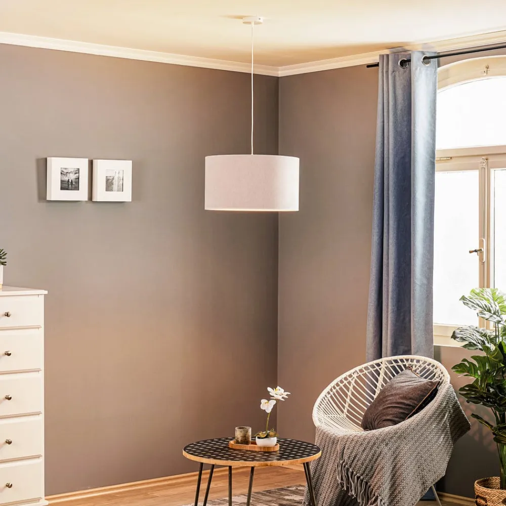 Hængelampen Bristol imponerer med sit elegante vævemønster og den harmoniske farvekombination af grå og hvid mat. Den er fremstillet af højkvalitetsstof og PVC og passer perfekt ind i forskellige boligområder som stuen, køkkenet, soveværelset og spisestuen. Lampen giver ethvert rum en særlig atmosfære, der kan virke både beroligende og inspirerende.
