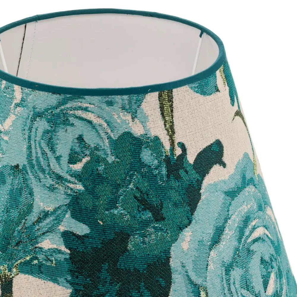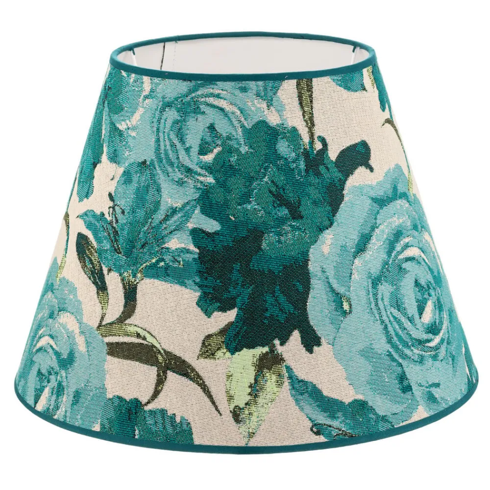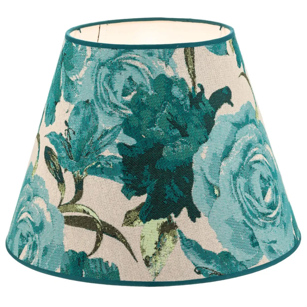 Sofia lampeskærmen forener stilfuld elegance med et charmerende blomstermønster i en livlig turkis farve. Denne lampeskærm er fremstillet af tekstil af høj kvalitet og tilfører ethvert rum et raffineret præg. Den omhyggelige forarbejdning og det tiltalende design gør den til et blikfang, der harmonerer med både klassiske og moderne indretningsstilarter.