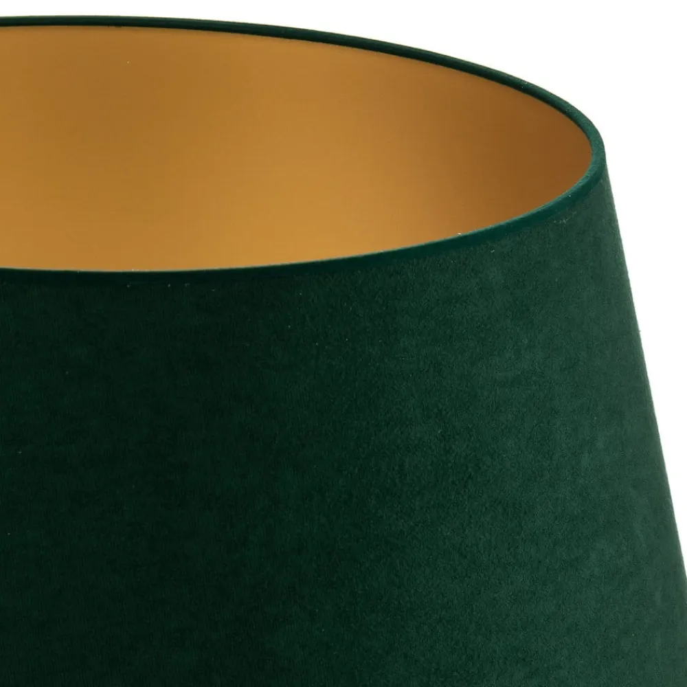 Lampeskærmen Cone imponerer med sit udsøgte materialevalg af ruskind og tekstil, der giver den et luksuriøst og samtidig naturligt udtryk. Kombinationen af mørkegrøn og gylden farve skaber et harmonisk og elegant udseende, der giver ethvert rum et særligt præg. Den omhyggelige forarbejdning og det høje kvalitet af materialerne garanterer en lang levetid og gør lampeskærmen til et tidløst element i indretningen.