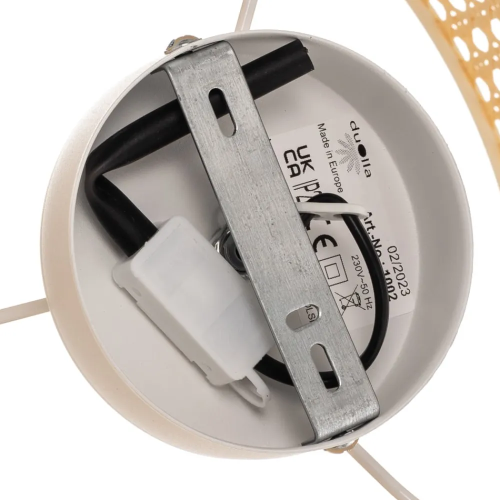 Loftlampen Boho forener bomulds og rattans naturlige skønhed i et unikt belysningselement. Denne lampe er fremstillet i Europa og består af en cremefarvet og træfarvet lampe, der giver enhver rum en varm og indbydende atmosfære. Brugen af naturlige materialer sikrer, at hver lampe er unik med individuelle farve- og strukturvariationer, der understreger træets karakter.