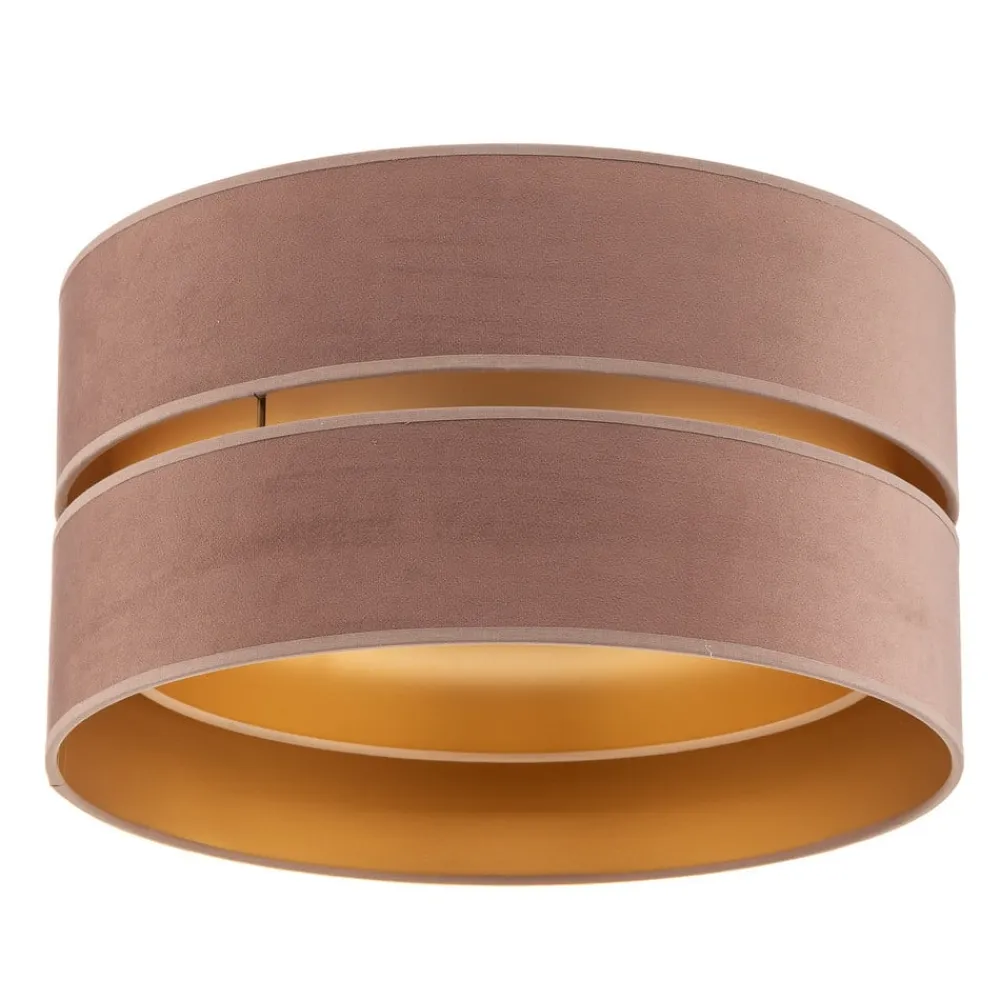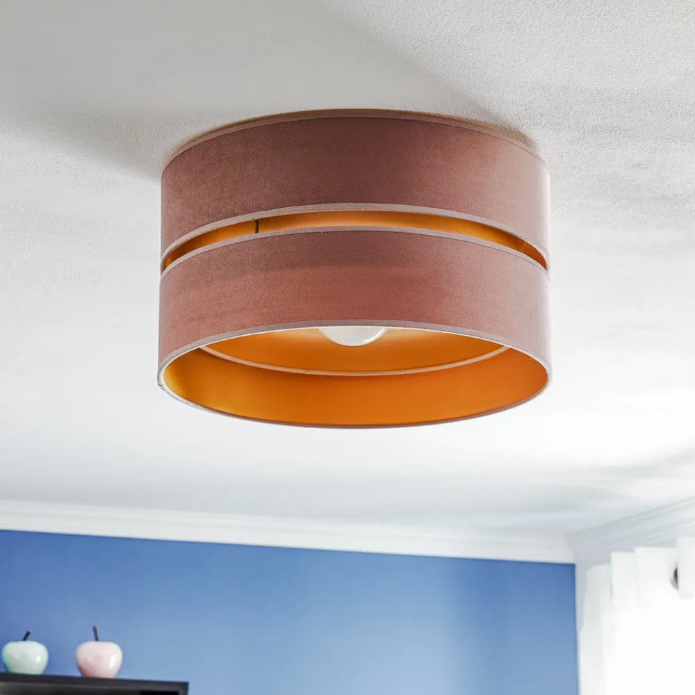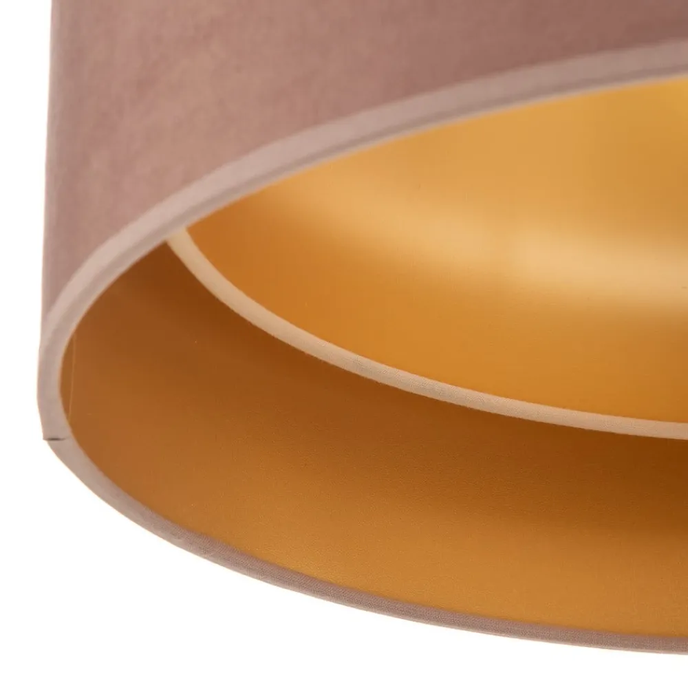 Loftlampen Golden Duo Ø 40 cm i lyserød og guld forener luksuriøst design med funktionel als. Den er fremstillet af højkvalitets velour og giver ethvert rum et elegant præg. Den blide farve i kombination med de gyldne accenter skaber en harmonisk atmosfære, der kommer til sin ret i både stuen, soveværelset og spisestuen.