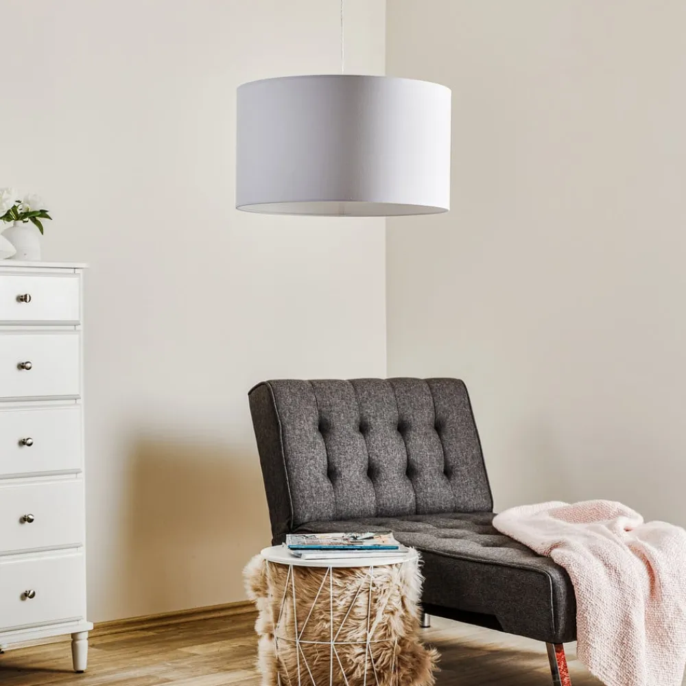 Hængelampen Roller i klassisk hvid kombinerer moderne design med funktionel alsidighed. Den er fremstillet af bomuldstekstil i høj kvalitet og passer perfekt ind i forskellige rumkoncepter og giver stuen, køkkenet, soveværelset eller spisestuen en stilfuld atmosfære. Lampens enkle elegance harmonerer perfekt med moderne indretningsstilarter og sætter diskrete accenter, der værdiggør rummet.