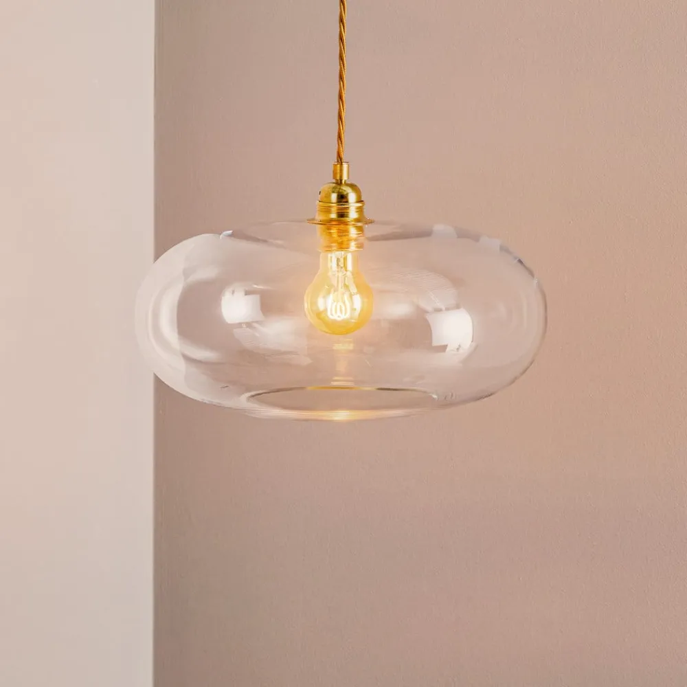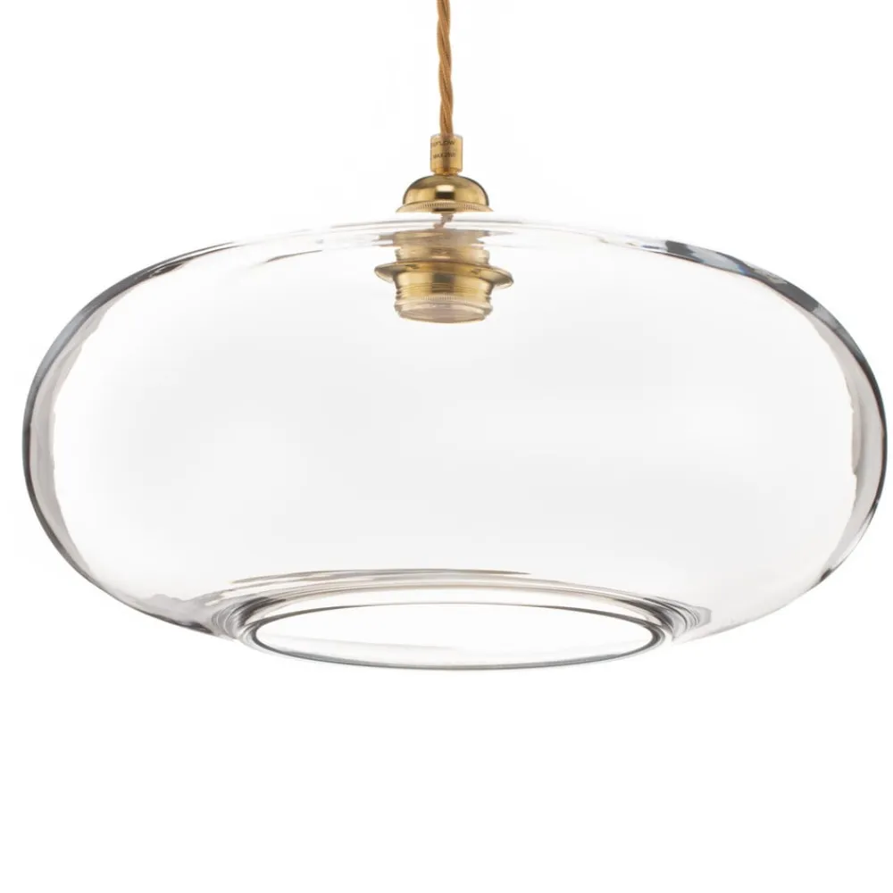 Den specielle form af glasset er det mest slående træk ved Horizon designer pendellampe: den brede og flade form af glasskærm minder om en horisont, der også er navnebror af denne imponerende række af lys. Lyset kan strømme uhindret gennem rummet og dermed sikre en behagelig lyseffekt. Samtidig sikrer det klare glas, at den anvendte lyskilde forbliver uhindret. Der kan således oprettes en ekstra blikfang, når du bruger dekorative glødetråde eller eftermonteringslamper.
