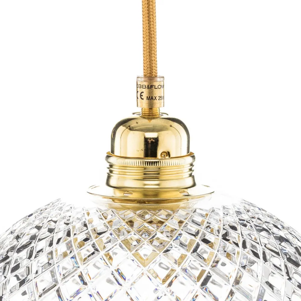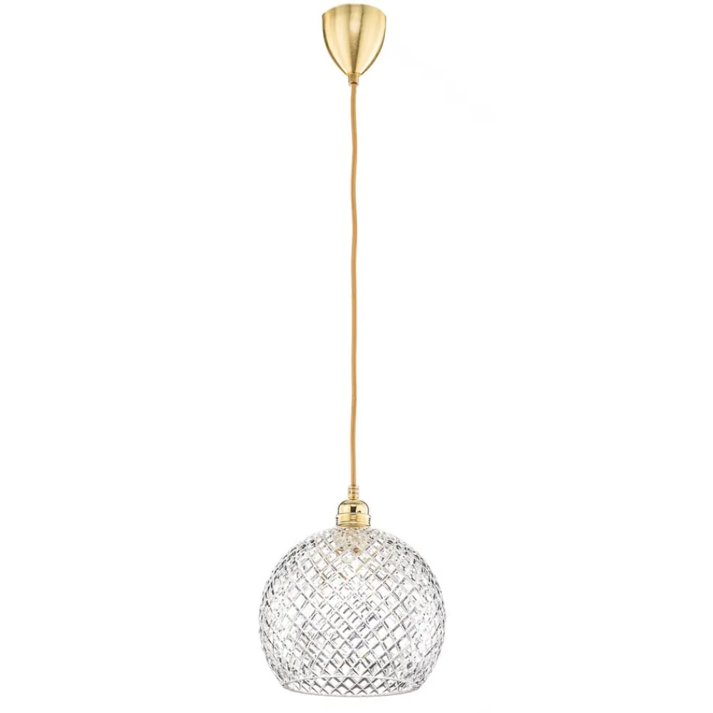 Det håndblæste glashus af krystalglas er specielt i designet af Rowan-hængelampen. Dette gør det muligt for lyset at oplyse rummet lyst på alle sider. fatning og tekstilkablet af høj kvalitet, der er forsynet med en skinnende guldfarve og afrunder designet på en ædle måde, danner en flot kontrast. Med sit klassiske udseende og enkle design er Rowan pendlen ideel til at supplere mange forskellige leveformer. Uanset om det installeres individuelt eller i grupper, hvad enten det er i hjørner eller over bordet, tilbyder Rowan-lampen altid et dekorativt blikfang.