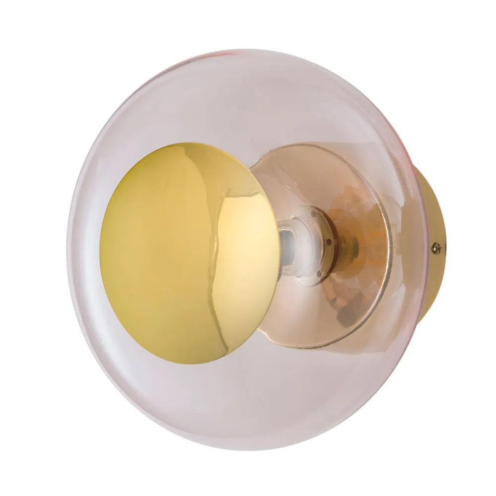 Fra et rundt, guldfarvet metalvægbeslag buler det smukke, håndblæste glas ind i rummet, som Horizon-væglampen optisk fokuserer på. Ved at vælge en dekorativ lyskilde, som den, der fås fra tilbehør, kan den dekorative appel fra denne usædvanlige ekstra lyskilde øges. Lyset udsendes på alle sider og skaber en hyggelig atmosfære i rummet.