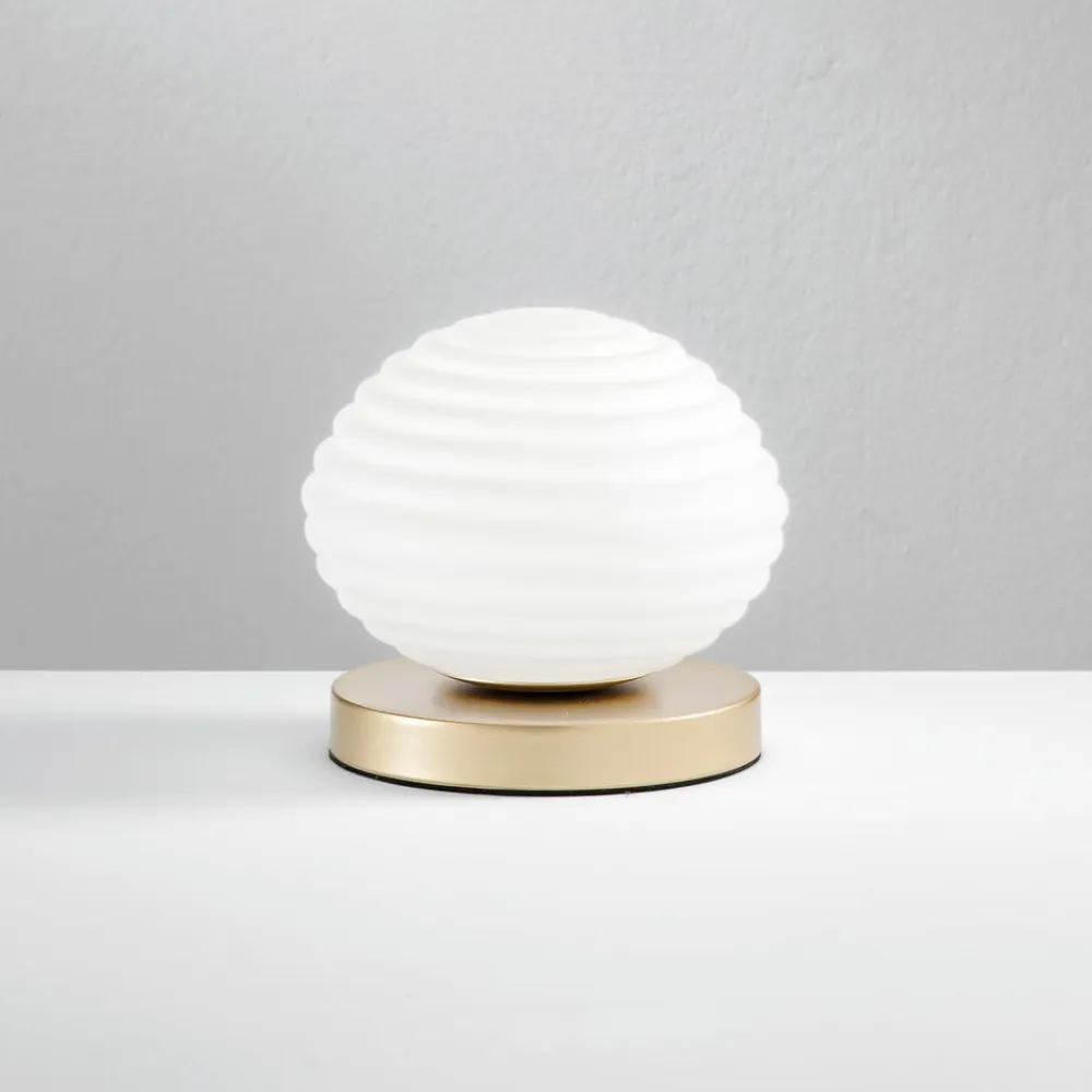 Ripple bordlampe, guldfarvet/opal, Ø 18 cm