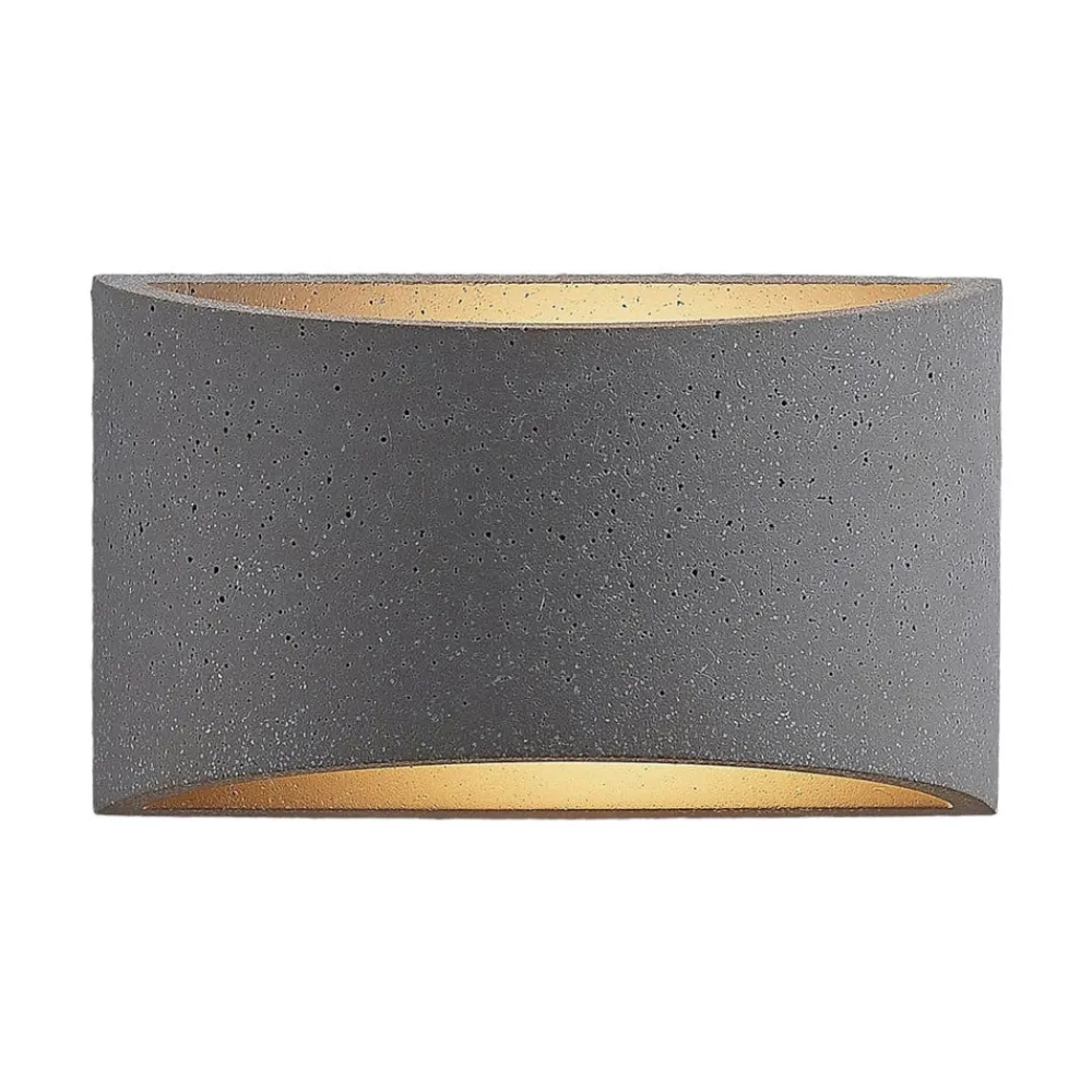 Halvrund Edvin LED-væglampe af beton med en med smuk lyseffekt og G9-pære med dæmperfunktion