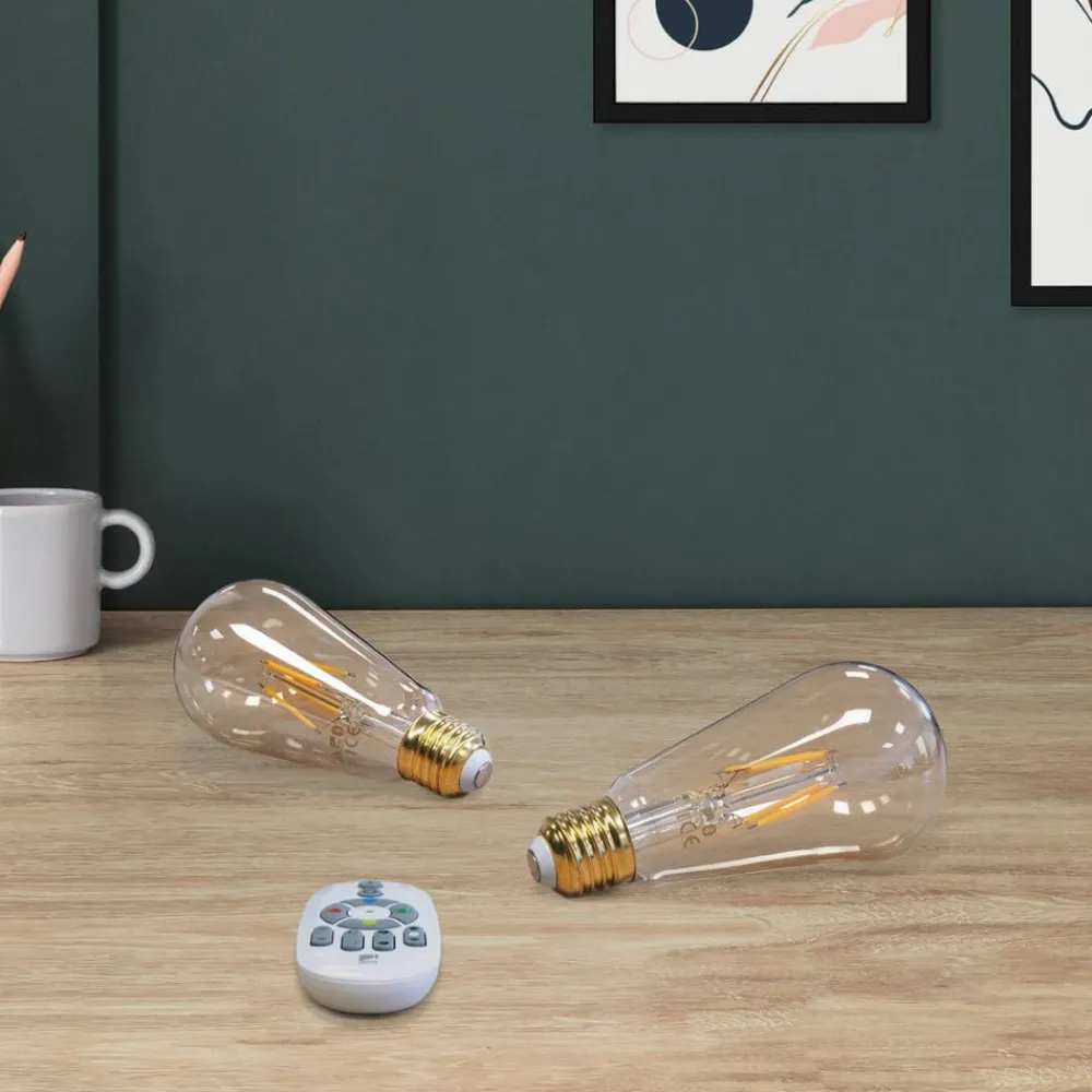 EGLO connect – LED-pære ST64 E27 5,5W 500 lumen, app-styrbar 2-pak Den praktiske 2-pak med LED-pærer fra smart home-serien EGLO connect leveres her med en matchende fjernbetjening. Den kan bruges klassisk og uden internet og gør det muligt at tænde/slukke eller dæmpe lyset. For mere komfort og funktionalitet kan de to lamper også styres via app eller stemmeassistent. Funktioner / kompatibilitet: – kan styres med den gratis AwoX HomeControl-app – kompatibel med smart home-systemer fra andre producenter, der bruger ZigBee 3.0 – direkte forbindelse med Amazon Echo og Google Home mulig – øget rækkevidde takket være ekstra Bluetooth-mesh – kompatibel med alle artikler fra EGLO connect Bluetooth-serien – kan styres med en passende fjernbetjening, selv uden internetadgang (se tilbehør)