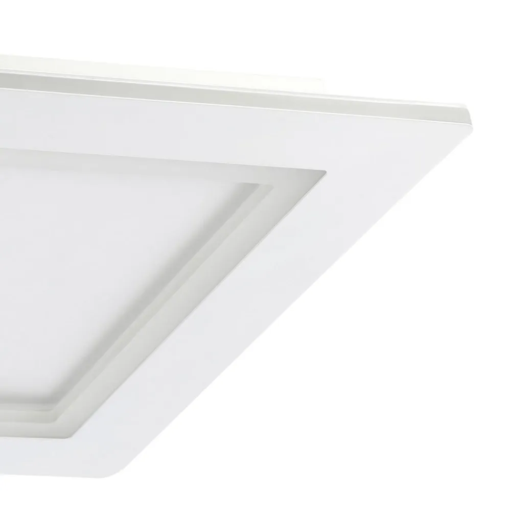 LED-loftlampe Padrogiano-Z EGLO Connect, firkantet LED-loftlampen Padrogiano-Z fra connect.Z smart home-serien er lavet af hvidt metal og en stor plastramme. De integrerede LED’er giver et behageligt lys, der kan justeres efter ønske takket være RGB- og CCT-farveskiftfunktionen. Den indre del af armaturet giver hvid belysning, der kan justeres mellem varmhvid, universalhvid og dagslys-hvid, mens LED’erne, der er installeret rundt om rammen, giver en række forskellige RGB-lysfarver. Både den ydre og den indre ring kan tændes og slukkes og dæmpes separat. Loftlampen styres via en gratis app (AwoX Home Control) og giver adgang til flere praktiske funktioner som f.eks. dæmpning, timer, tilstedeværelsessimulering og meget mere. LED-panelet styres via Bluetooth og ZigBee 3.0 og kan også styres via kompatible stemmeassistenter. Alternativ betjening af loftlampen er mulig ved hjælp af den separat tilgængelige fjernbetjening. Den firkantede lampe passer ind i mange forskellige indretningsstile og giver stemningsfuld belysning til ethvert rum – uanset om det er i køkkenet, stuen, soveværelset, gangen eller på kontoret.