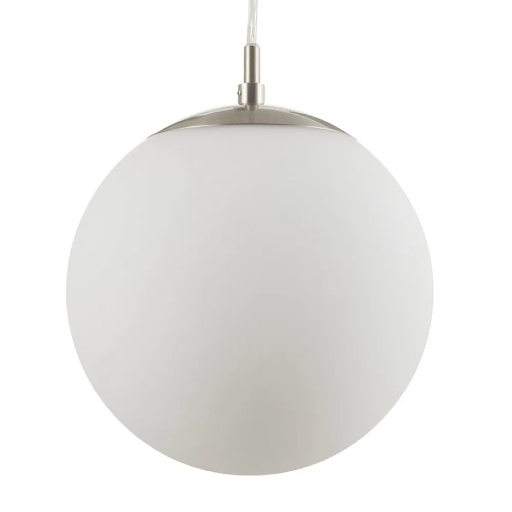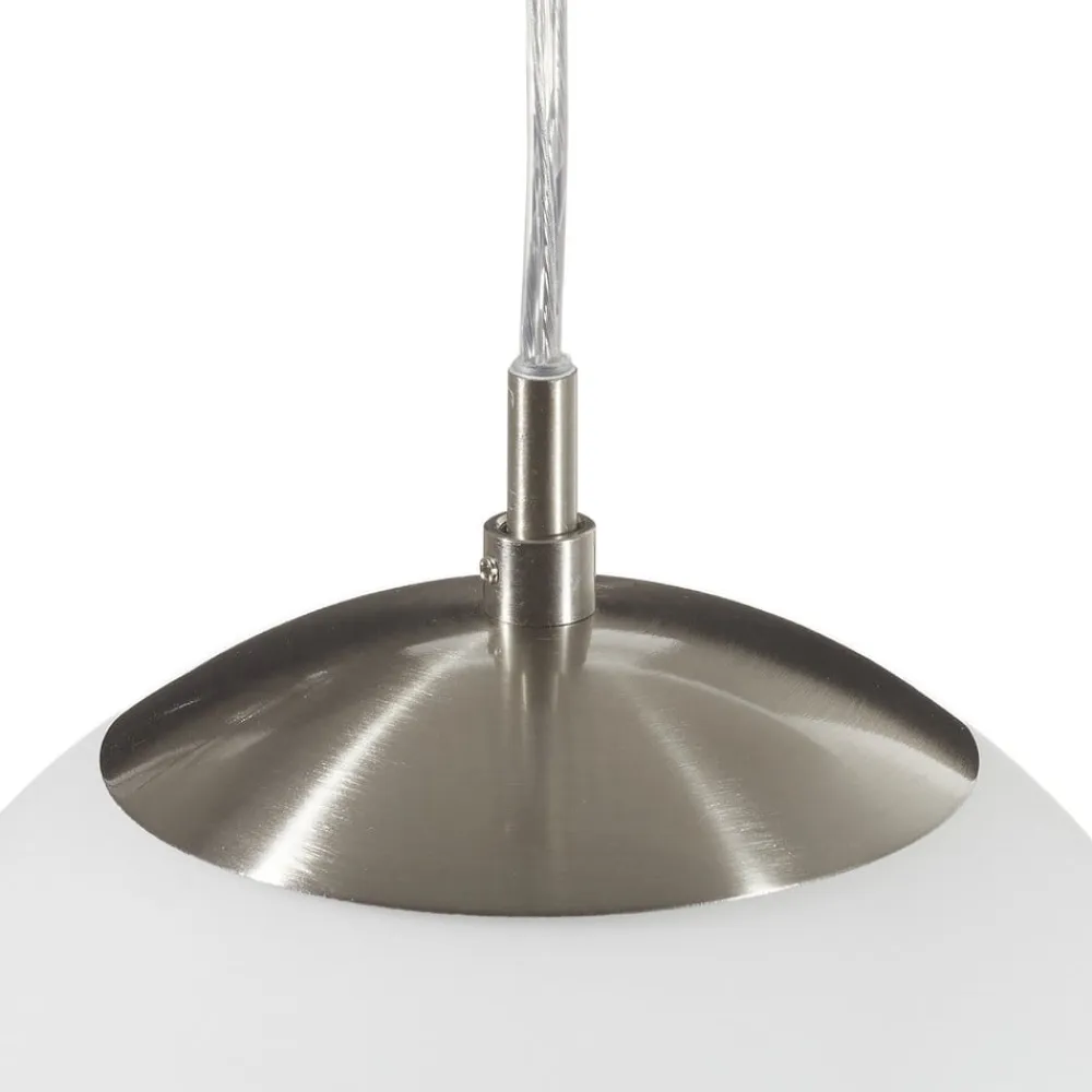Rondo pendellampe sørger for en jævn og harmonisk belysning i stuen eller entreen. Den hvide glasskærm sørger for lyst lys og udfyldes af et ophæng i mat nikkelfinish. På grund af den diskrete udformning passer pendellampen Rondo ind i de fleste indretningsstile.