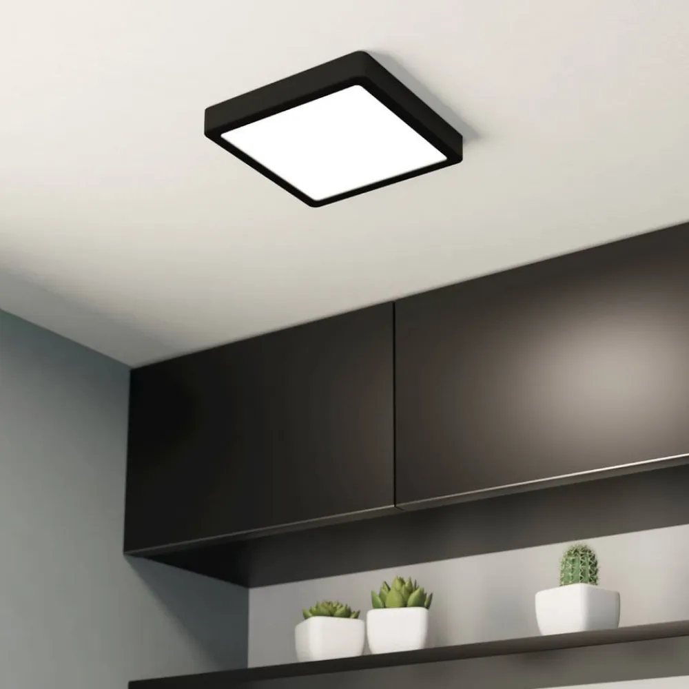 LED-loftslampe Fueva 5 IP44 3000K sort 21x21cm