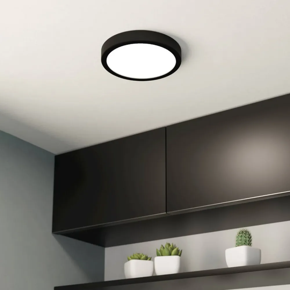 LED-loftslampe Fueva 5 IP44 3000K sort Ø21cm