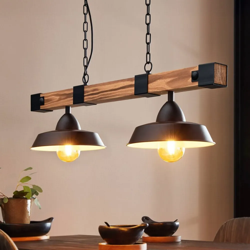 Oldbury hængelampe: rustikt design til hjemmet Oldbury hængelampen er en harmonisk kombination af mørkt træ og elegant sort, der giver et rustikt præg til ethvert rum. Denne 2 lyskilder er ideel til stuer, spisepladser og køkkener, hvor den skaber en varm og indbydende atmosfære med sin landhusstil. Udstyret med kædeophæng, som på imponerende vis afrunder den rustikke landhusstil – Eksternt dæmpbar