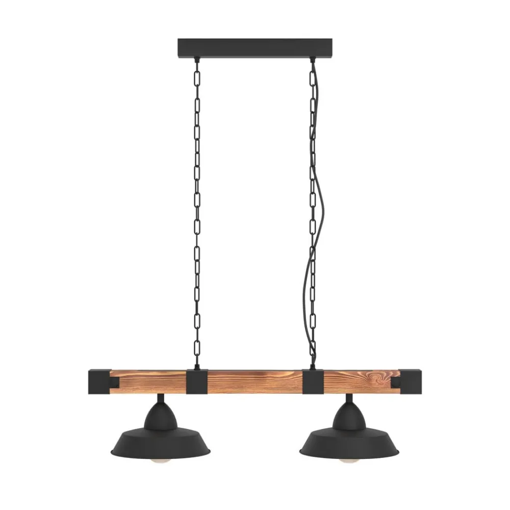 Hængelampe Oldbury, sort/mørkt træ, længde 86 cm, 2 lyskilder.
