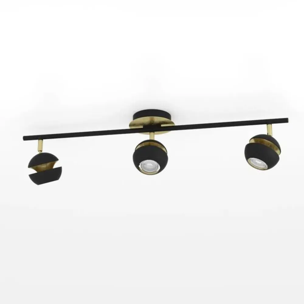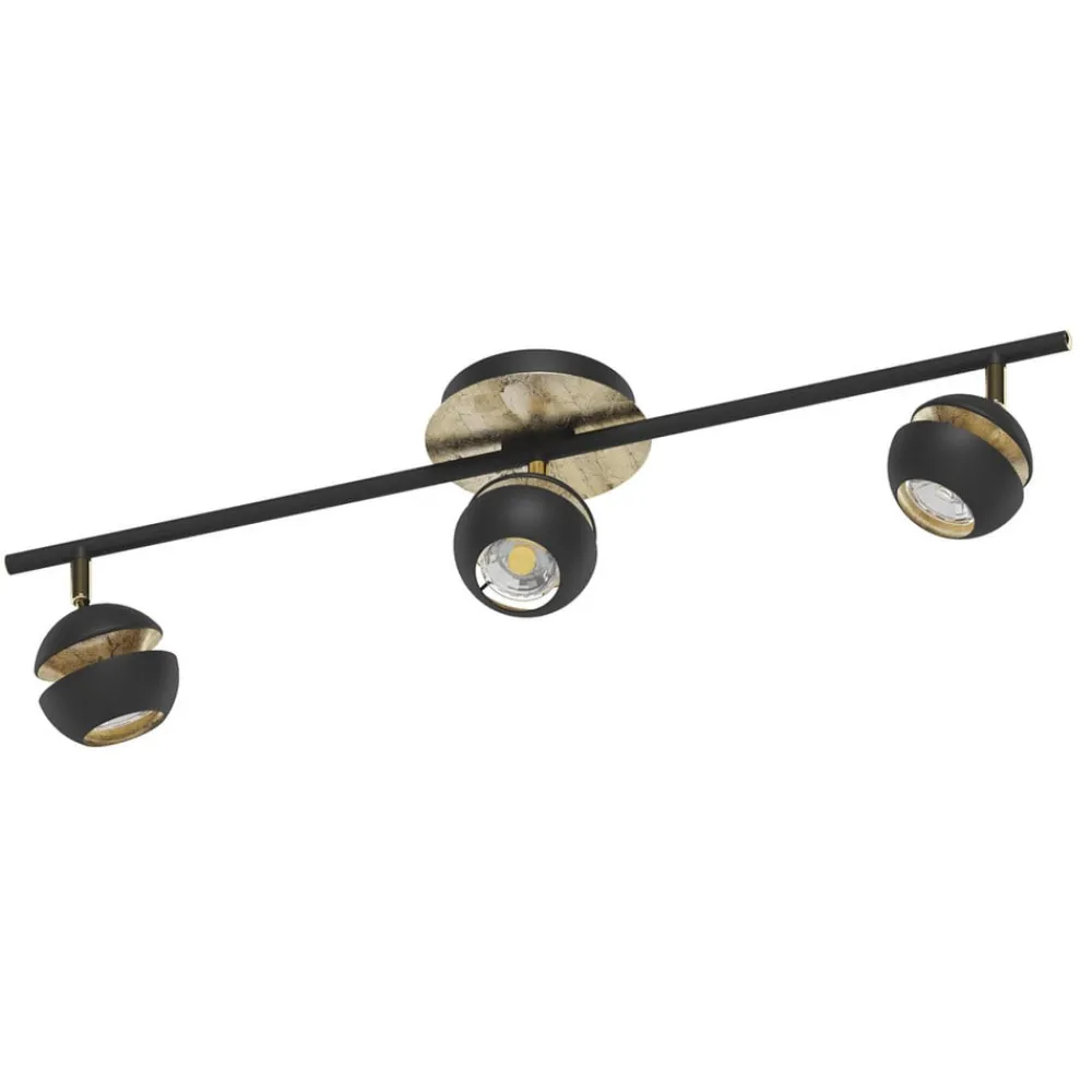 LED-loftslampe Nocito med tre lyskilder i sort-gyldent design