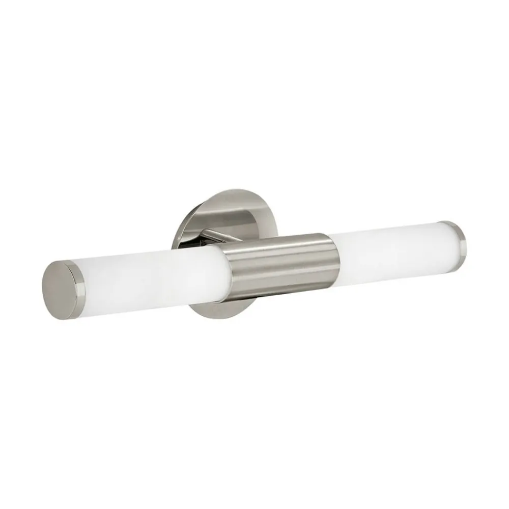 Denne væglampe er en stilig badeværelsesbelysning i moderne materialer. Glas og metal forenes til et smukt hele. Lampen gør en speciel god figur hvis den monteres ved siden af spejlet. Her kommer den tiltalende cylinderform til sin ret. Serien består af varianter i chrome eller nikkel med et eller to lys.