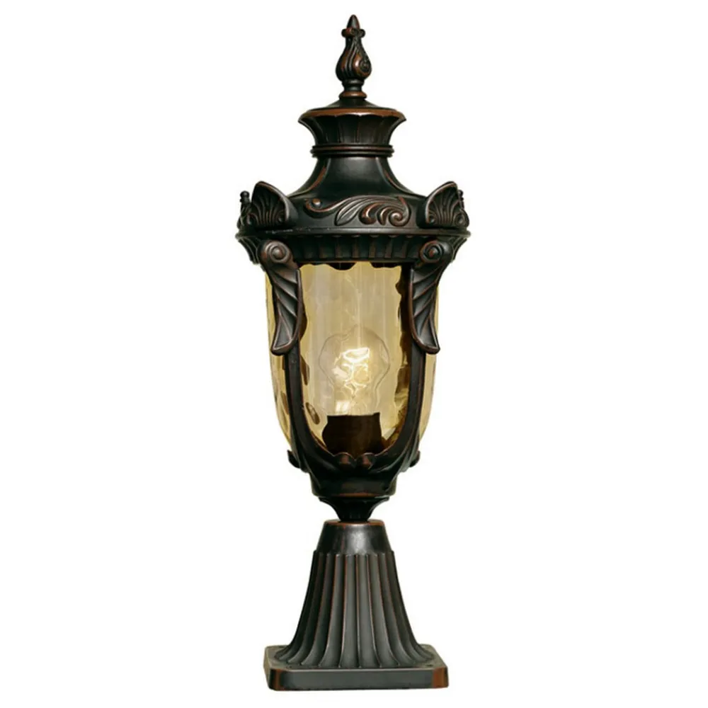 Både farvevalget – antik bronze til stellet og fint rav til glasset – samt formen og ornamenterne minder om gadelamper fra tiden omkring 1900. Med PHILADELPHIA sokkellampen kan man hente denne flair hjem i sin egen have. Bronze-patinaen er påført i hånden.
