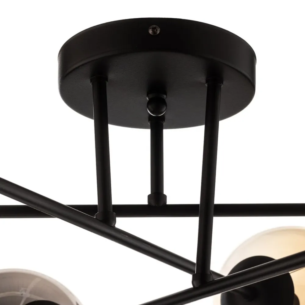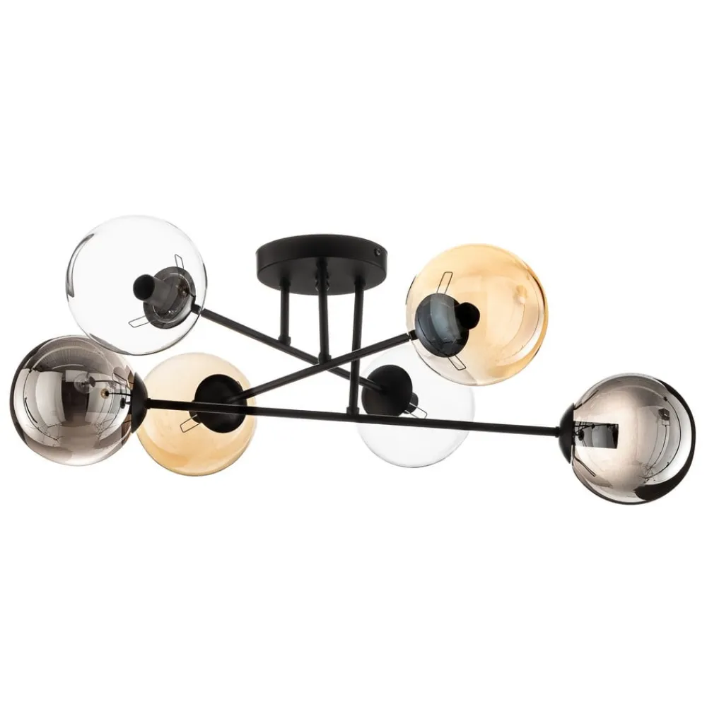 Loftlampen Glassy forener moderne design med høj kvalitet. Den er fremstillet af pulverlakeret stål og elegant glas og er et stilfuldt supplement til stuer, spisestuer og entreer. Kombinationen af farverne sort, grafit, rav og klar giver lampen en tidløs æstetik, der passer perfekt ind i forskellige indretningsstilarter.