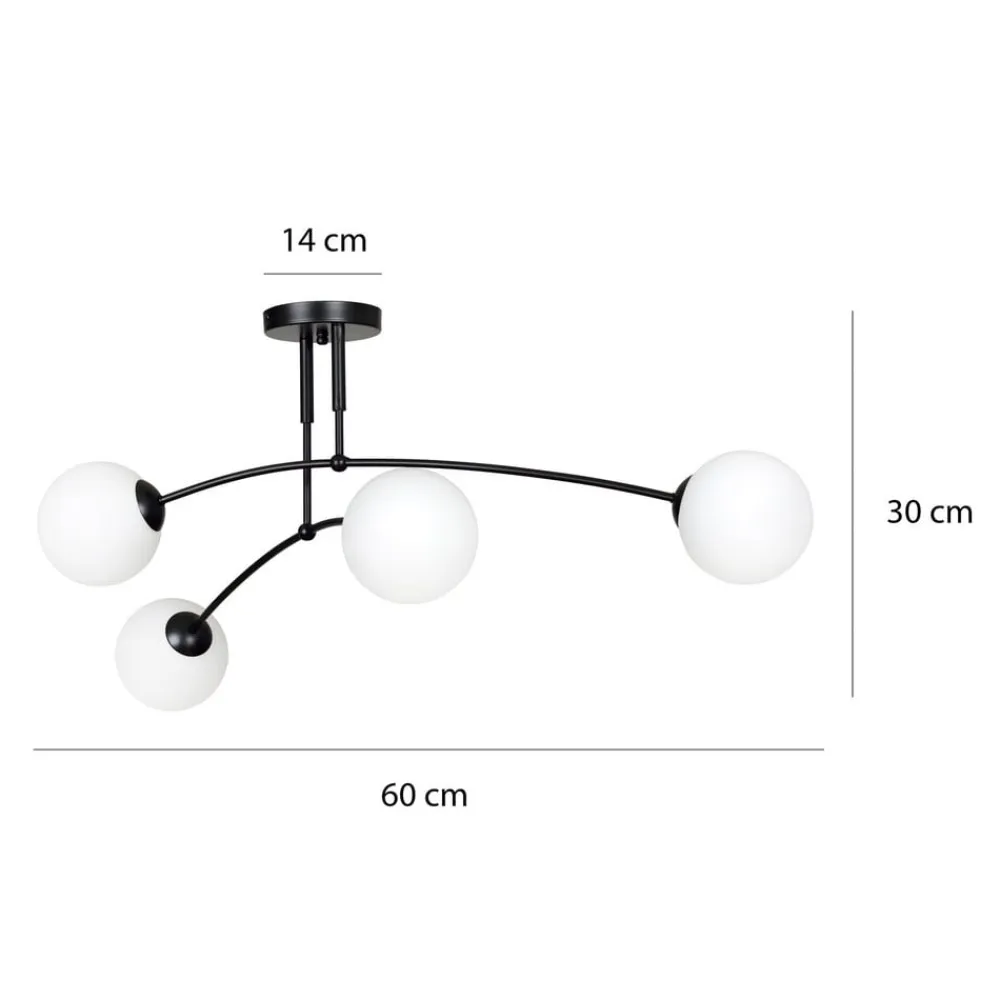 Loftlampen Pregos 4 i sort imponerer med sit moderne design og kombinationen af højkvalitets metal og glas. Denne lampe med 4 lyskilder er ideel til forskellige boligområder som entre, soveværelse, stue og spisestue. Den stilfulde farve i sort og hvid giver ethvert rum en tidløs elegance, mens de klare linjer og den høje kvalitet sikrer et harmonisk helhedsindtryk.