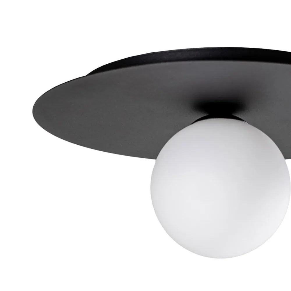 Loftlampen Solar i sort og opal forener moderne design med materialer af høj kvalitet. Den er fremstillet af pulverlakeret stål og glas og er et stilfuldt supplement til forskellige boligområder som stuen, entreen, køkkenet og spisestuen. Lampen imponerer med sit klare formsprog og harmoniske farvevalg, der giver ethvert rum et særligt præg.