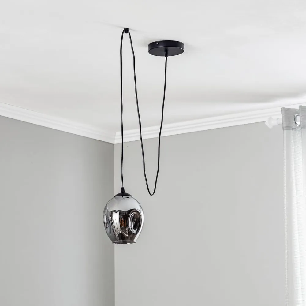 Pendellampe Starla decentral 1 lyskilde glas grafit kombinerer moderne design med høj kvalitet. Fremstillet af pulverlakeret stål og glas, passer denne lampe perfekt ind i forskellige rumkoncepter. Den diskrete farve i sort og grafit understreger dens stilfulde udseende og gør den til et alsidigt element i stuer, soveværelser, køkkener og spisestuer.