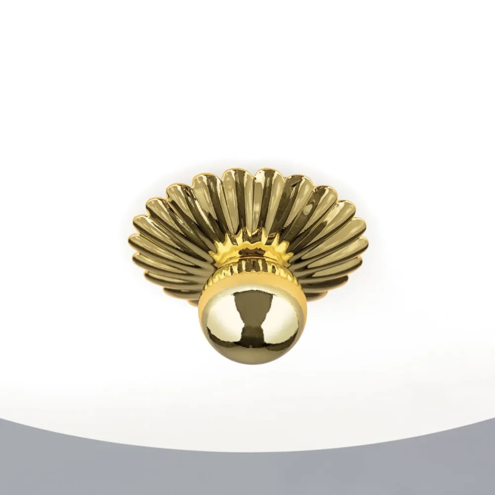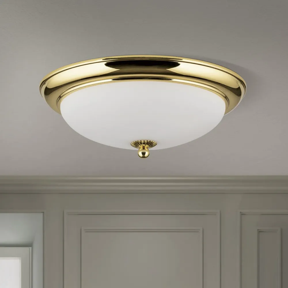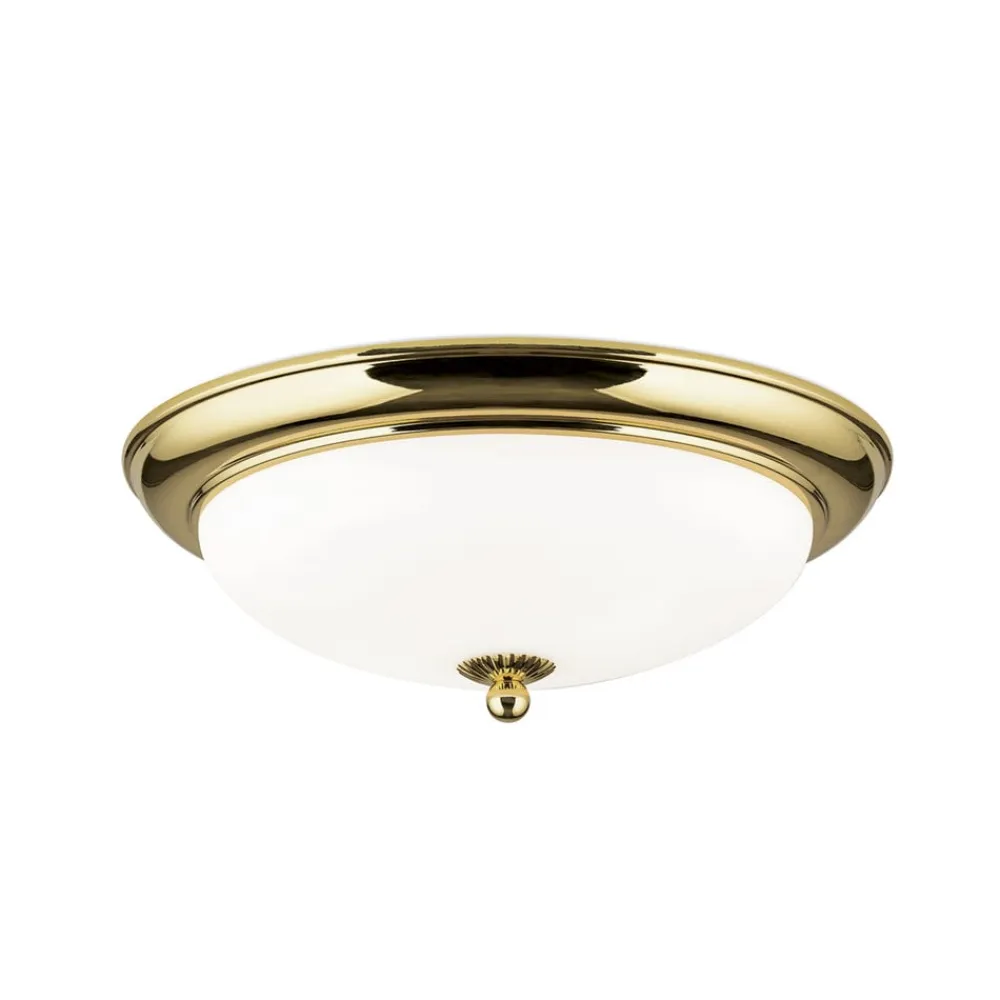 Empire loftlampe, Ø 35,5 cm, guld, matteret opalglas