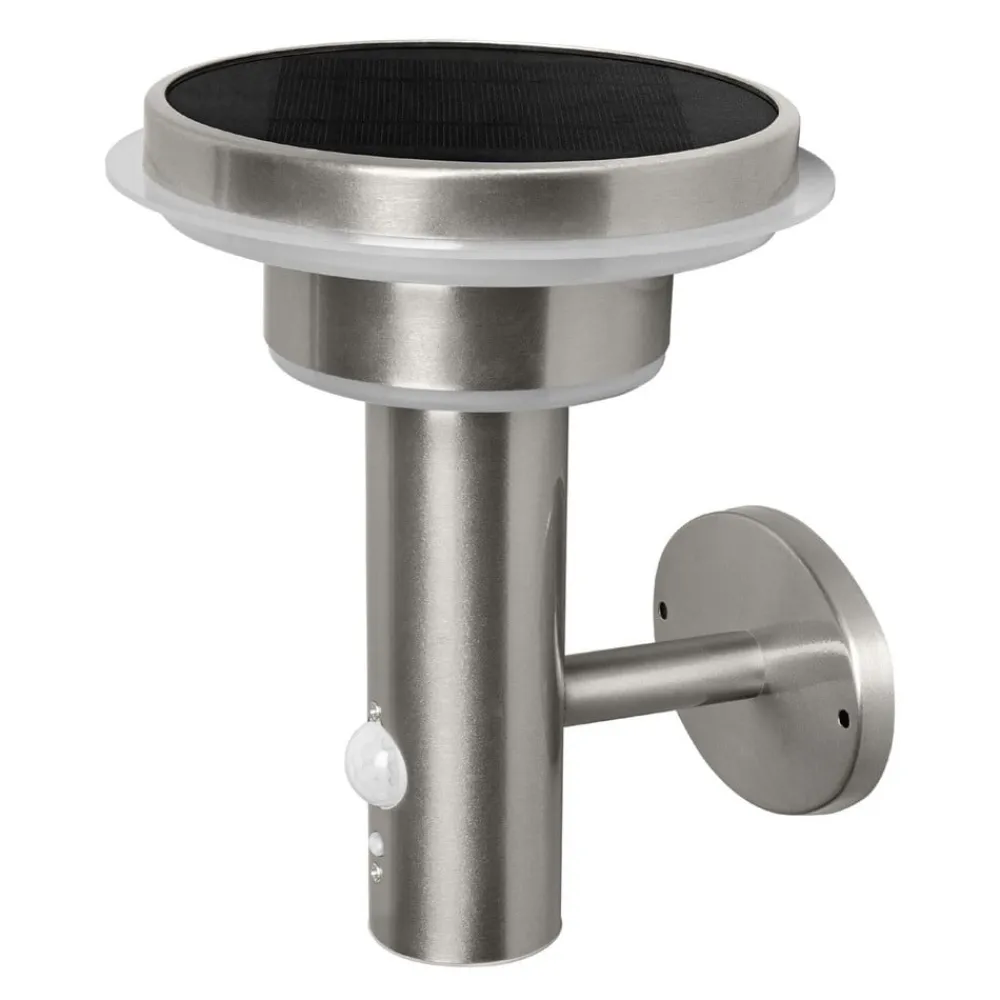 Udendørs væglampe med solceller Endura Style Solar Double Circle Endura Style Double Circle væglampe med solceller og integreret sensor kan bruges til at give belysning, hvor der ikke er strømtilslutning til at installere en konventionel væglampe. Det moderne armatur i rustfrit stål giver on-demand-belysning og sparer samtidig energi, da det er udstyret med en bevægelses- og dagslyssensor, så lyset kun tændes, når der er brug for det. Bevægelsessensoren har en detektionsvinkel på 90° og en rækkevidde på 6 meter, tærskelværdien er 10 lux. Armaturet kan indstilles til tre driftstilstande: – Kontinuerligt lys med 200 lumen – Kontinuerligt lys med 75 lumen, skifter til 300 lumen ved bevægelse – Lys slukket, skifter til 400 lumen ved bevægelse Afhængigt af indstillingen er belysningens varighed op til 8 timer, batteriet genoplades af solpanelet på 7 til 8 timer – afhængigt af vejret og armaturets orientering.