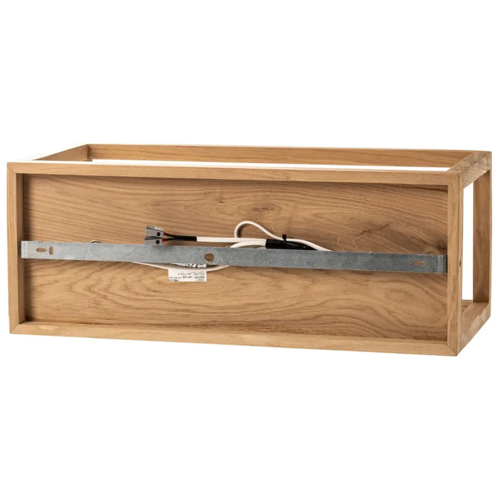 Rowan-loftslampe med tre lys i FSC-certificeret egetræ, rektangulær form Rowan-loftslampen består af en rektangulær ramme i olieret egetræ. I denne ramme er der monteret tre sorte metalfatninger, hvori der kan indsættes pærer efter eget valg med den passende fatning. Da pærerne er synlige, er dekorative lyskilder ideelle til at belyse loftslampen. Desuden kan lysets farve og funktion vælges efter personlige præferencer. Takket være den klare form og det afdæmpede farveskema er loftslampen velegnet til brug i forskellige boligområder. Den kan f.eks. lyse op i entreen eller bidrage til en hyggelig atmosfære som stue- eller soveværelseslampe. Egetræet giver også et naturligt touch. Den åbne form udsender lys i alle retninger, og det anvendte træ er FSC-certificeret og kommer fra bæredygtigt og miljøvenligt forvaltede skovområder. Lamperne fra Envostar fremstilles i Europa, så man undgår lange transportruter og reducerer CO2-udledningen. Desuden lægger emballagen vægt på klimaneutralitet – engangsmaterialer som plast eller polystyren undgås.