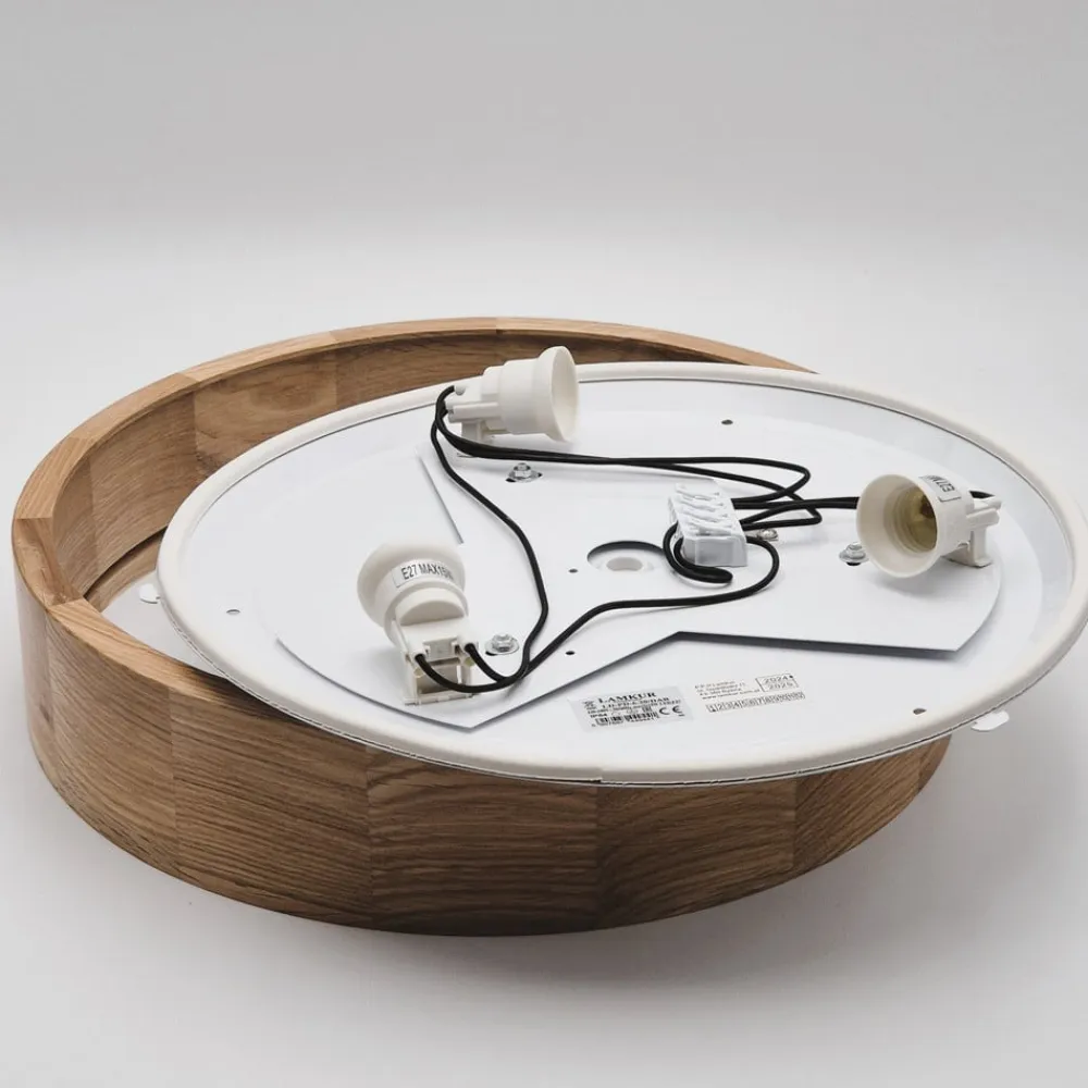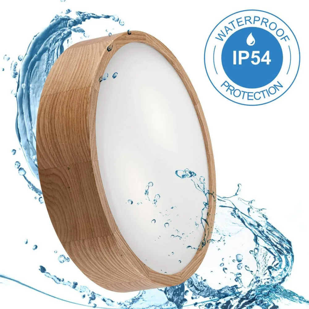 Harmonisk Caspian loftlampe af træ og plast Caspian loftlampen har et elegant egetræsdesign. Den høje kapslingsgrad på IP54 gør den velegnet til brug i fugtige rum som f.eks. badeværelser. Træfarven har en harmonisk effekt og skaber en behagelig atmosfære. Brugen af FSC-certificeret træ og bæredygtige materialer understreger engagementet i ansvarlig produktion. Caspian loftlampen er derfor et ideelt valg for alle, der sætter pris på stil, funktionalitet og bæredygtighed.