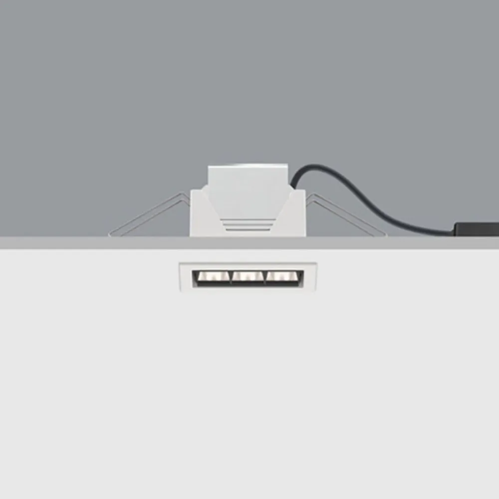 Rektangulært Compar LED-loftindbygningsarmatur fra ERCO som linsewallwasher, 6 W LED, dæmpbar via bagkant Uanset om det er til indirekte belysning via væggen eller til belysning af et varedisplay på siden – Compar LED-loftindbygningsarmaturet er det perfekte valg til applikationer, der kræver lys, der udsendes fladt til siden (70° afskærmningsvinkel). Compar er udstyret med en særlig Softec linseteknologi til dette formål. Installationsarbejdet minimeres takket være de medfølgende monteringsfjedre, det kompakte Abua-design, det eksternt positionerbare forkoblingsudstyr og plug-in-klemmeforbindelsen. Lysudbyttet kan reguleres via en ekstern bagkantsfasedæmper – reflektor: plast, sølvdampbelagt, stærkt spejlende – afblændingsraster: plast, sortlakeret – med dæmpbart ERCO-strømforsyningsudstyr – 2-polet plug-in-terminal – god farvegengivelse: Ra 92 – tilsluttet effekt: 9,1 W – aluminiumsprofilhus fungerer som køleplade