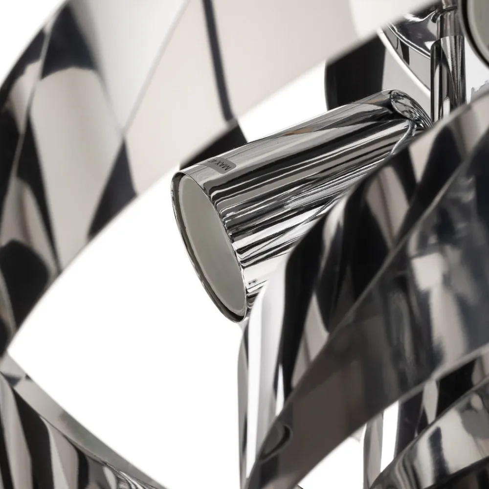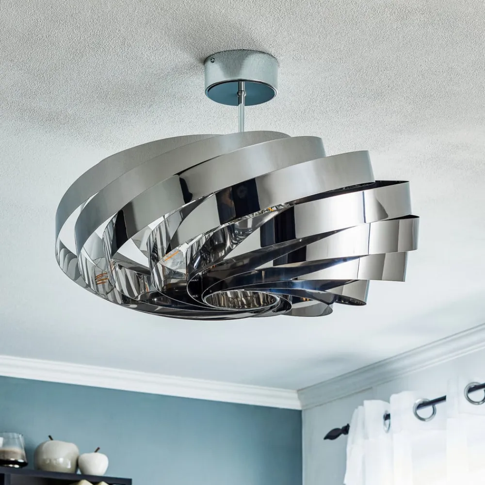 Med Vento- loftlampe er fokus på det ekstravagante skygge-design. Her er metalstrimler samlet i en spiral for at danne en luftig struktur, bag hvilken lyskilderne skinner deres lys nedad og gennem mellemrummene mellem skærmen. Atmosfærisk belysning med meget specielle lyseffekter oprettes. Med hensyn til farve matcher loftlampe krom og nikkel mange levende stilarter. Kan også bruges som bordbelysning.