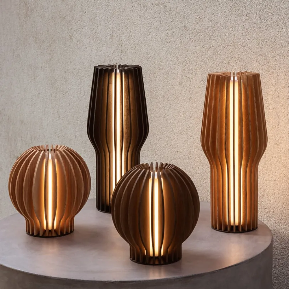 Radiant genopladelig LED-bordlampe af egetræ med USB-ladestation, 3-trins dæmpbar Skærmen på Radiant genopladelig LED-bordlampe er lavet af egetræ. Lyset, der genereres af de integrerede LED’er, sendes ud gennem stiverne og skaber en smuk lyseffekt. Derudover kan intensiteten dæmper i tre trin ved berøring. Et genopladeligt batteri er integreret, så Radiant også kan bruges, når der ikke er nogen strømkilde i nærheden. Der medfølger en USB-ladestation (uden netadapter) til opladning. Når Radiant er fuldt opladet, lyser den i op til 7 timer med fuld lysstyrke. Tekniske egenskaber – Kan bruges uafhængigt af lysnettet takket være det genopladelige batteri – Kan dæmpes i tre trin (100 % / 70 % / 25 %) – Med USB-opladningsstation (uden netadapter)