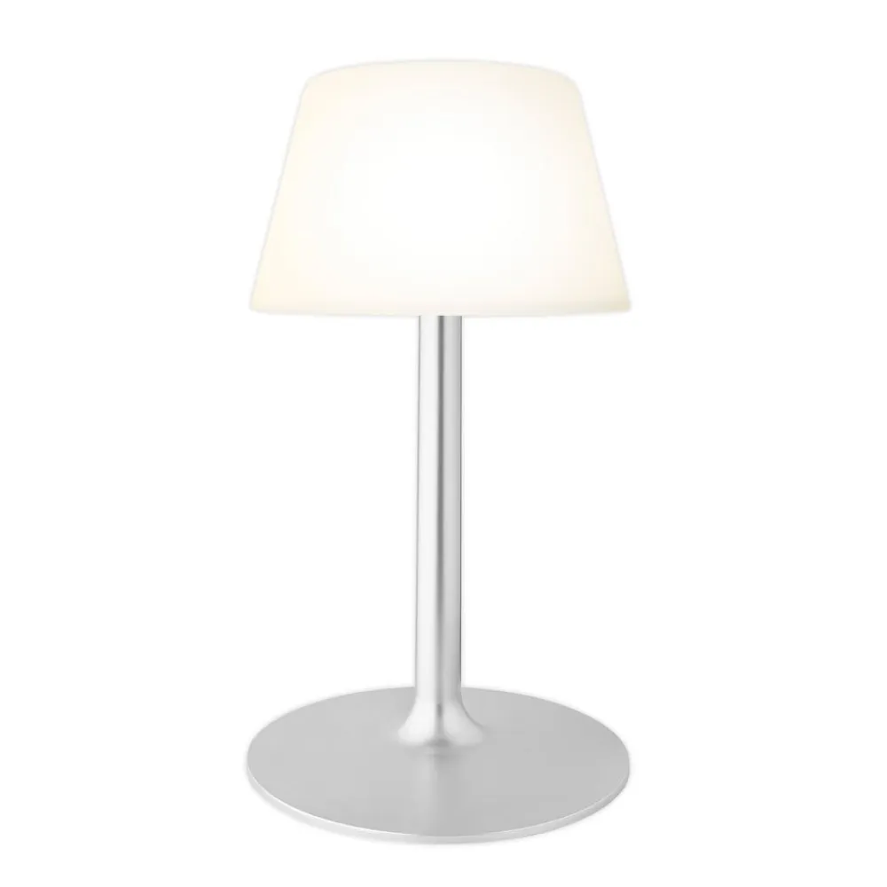 Udstyret med solpanel og genopladeligt batteri: SunLight LED solterrassebelysning med skumringssensor, 3-trins dæmpbar, USB, IP65Den moderne SunLight LED solterrassebelysning har en sølvfarvet base lavet af stål og en skærm lavet af opalhvid plast. Lysintensiteten fra de integrerede LED’er kan dæmpes i tre trin. Ved hjælp af en skumringssensor tændes SunLight automatisk, når solen går ned, og efter 6 timer slukkes den automatisk (energibesparende funktion). Takket være solpanelet og de genopladelige batterier har den ikke brug for strøm, og den er også støvtæt og beskyttet mod vandstråler. SunLight fungerer således som en dekorativ lyskilde på altanen eller i haven og med et fuldt opladet batteri i op til 20 timer.Tekniske egenskaber- takket være solpanel og genopladeligt batteri kan den bruges uafhængigt af lysnettet- alternativt genopladelig via USB (USB-kabel inkluderet, uden lysnetadapter)- tretrins dæmpbar (100 % / 70 % / 25 %)- inkl. Energisparefunktion: slukker automatisk efter 6 timer- Lysvarighed: op til 20 timer (ved 25 % effekt)- Opladningstid: ca. 8 timer- Støvtæt og beskyttet mod vandstråler (IP65)