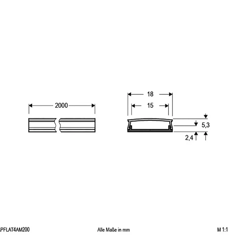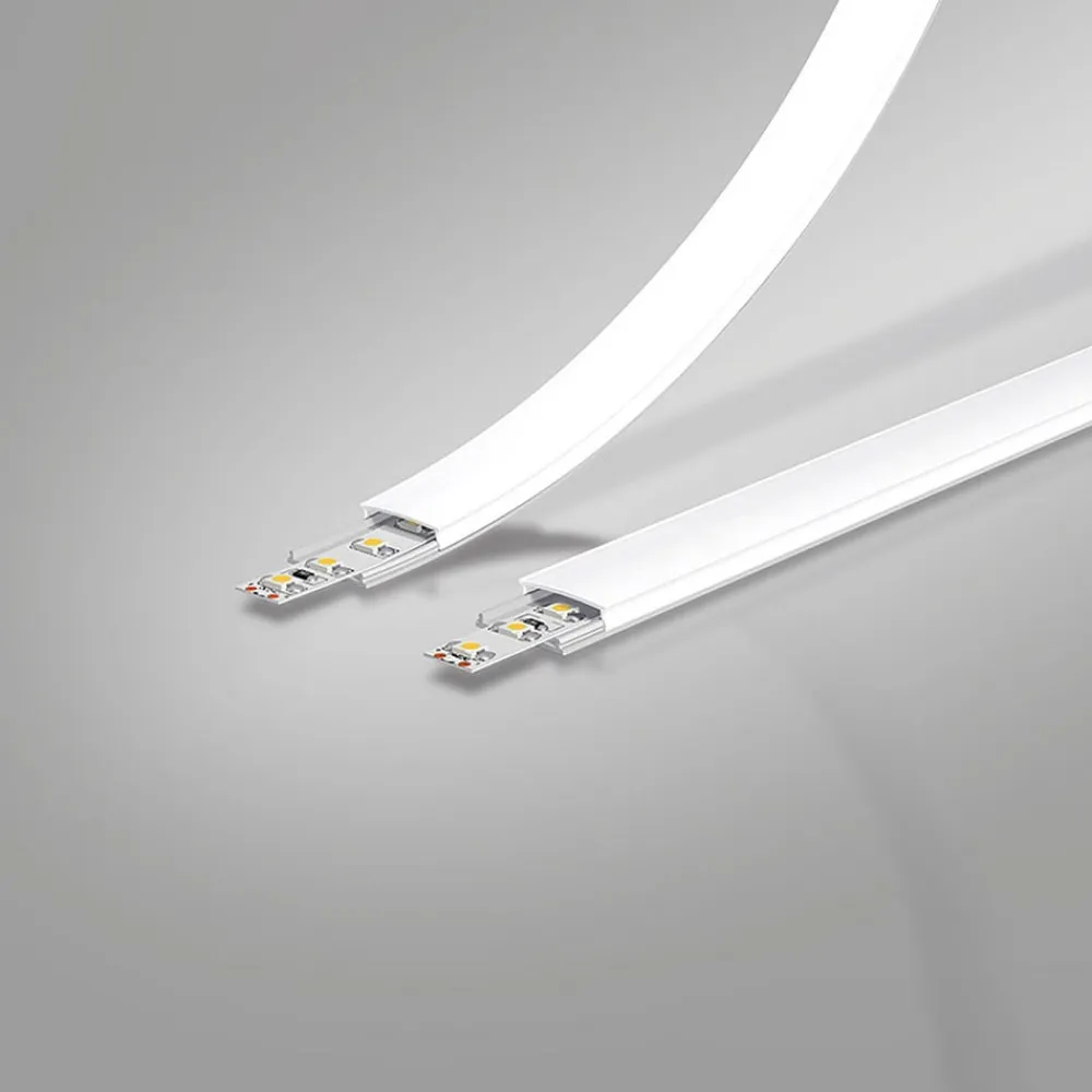 Den flade U-profil i aluminium leveres med et matchende, opalt betræk lavet af polycarbonat og er takket være dets konstruktion ideel til møbler som udstillingsvinduer eller køkkenskabe. Den kan bøjes op og ned, så den kan tilpasses buede overflader. Profilen fungerer som en køleplade, når du bruger LED-strips, men kan også bruges som en praktisk kabelkanal. De må kun limes, når de endelig er bøjet.