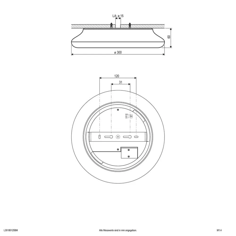 LED-loftlampen Catino er udstyret med en bevægelsessensor. Hvis der registreres bevægelse (under 10 lux), tændes armaturet i 30 sekunder. Den lysfarve, som armaturet skal lyse i, kan bestemmes ved hjælp af en CCT-kontakt før installationen. Du kan vælge mellem varmt hvidt lys (3.000 K), universelt hvidt lys (4.000 K) og dagslys (5.700 K).