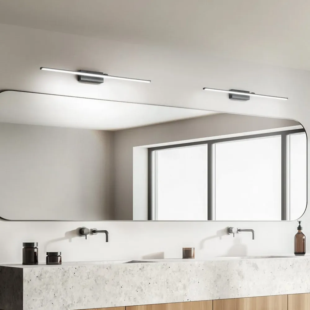 LED-væglampe Nala – ideel som spejl- eller gallerilampe Den slanke LED-væglampe Nala er særligt velegnet til at belyse spejle og billeder, så de kommer til deres ret i entréen, stuen eller på badeværelset. Takket være det minimalistiske look og det klassiske, uagiterede design forbliver fokus altid på det objekt, der belyses. Væglampen består af et smalt, aflangt element på en lille base, der skrues fast på væggen under installationen. Objekter, der skal fremhæves på netop denne væg, kommer dermed bedst til deres ret. Med sit stemningsfulde lys bidrager armaturet også til atmosfæren i rummet og supplerer belysningskonceptet perfekt.