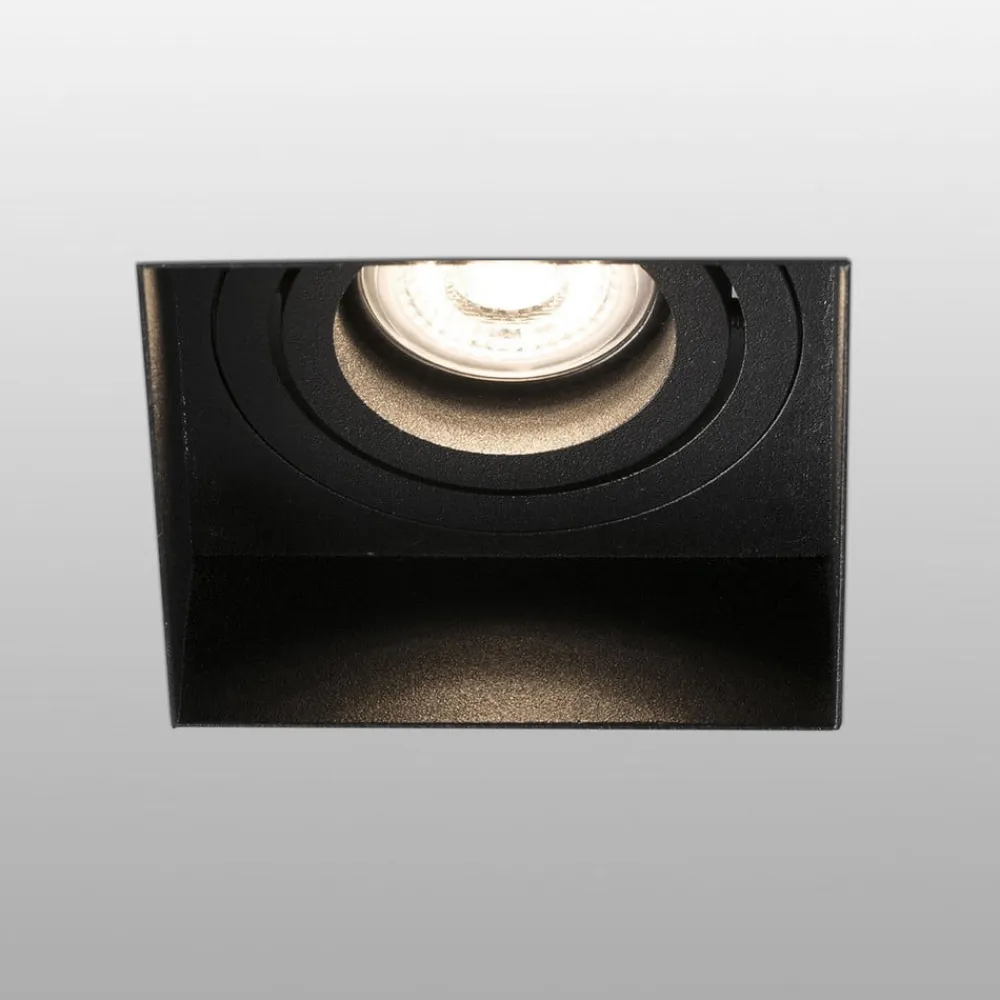 Den kantede Hyde indbygningsspot er ideel til målrettet belysning af rummet. Den GU10-lampe, der skal bruges, og som ikke er inkluderet i leveringsomfanget, kan drejes 30°, så ethvert ønsket område i gangen eller stuen kan belyses specifikt. Takket være det rammeløse design passer Hyde perfekt ind i loftet og fremstår derfor næsten diskret og ubemærket. Der findes matchende lyskilder som tilbehør.